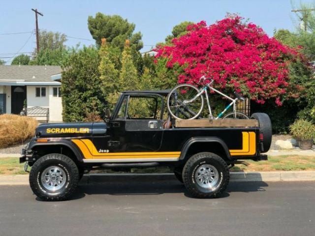 1982 Jeep Scrambler A car is only original once. In the sea of custom and over restored Jeeps this Scrambler stands out from miles away. Inarguably the most original Scrambler out there in the best color combo, black over tan. With less then 8000 units produced in 1982, they are getting really hard to find specially in this condition. 89k miles on the working odometer, 5 speed manual transmission. With its original paint and decals this Scrambler sure knows how to turn heads. This Jeep spent all his life in California. It still has both original blue plates. The body is straight, no rust anywhere just amazing patina. Never painted, the bed is all original with no dings,the wood side panels are original and further add to the Scramblers character. Dealer installed old school Warn winch gives it even a tougher look. I do have the original Marchal fog lights that it came with, including the hard to find plastic covers. The interior is a conversation piece on it\'s own. First thing you\'ll notice its the original upholstery on the factory 60/40 bench seat. Yes, this Scrambler is a 3 seater, with lap belt for the 3rd person. The dash is original and uncut, still ahs the original radio and the original ashtray. All the gauges work properly, odometer currently showing just 89k miles. There\'s a modern blutooth radio installed under the dash. Behind the seat there\'s a stealth alpine sub with an amp. The center console has a custom made cupholder installed. Again, nothing has been cut. In the bed there\'s a black aluminum lockable tool box installed. While an effort was made to preserve or try to keep everything as original as possible, there are some reliability and period correct modifications done to the Jeep. It has a 4\'\' lift with new shocks and bushings. 4 brand new BFG tires on the factory wheels. Under the hood is nice and presentable. A Howell TBI fuel injection system was installed, with check engine light and OBD reader in the cabin.