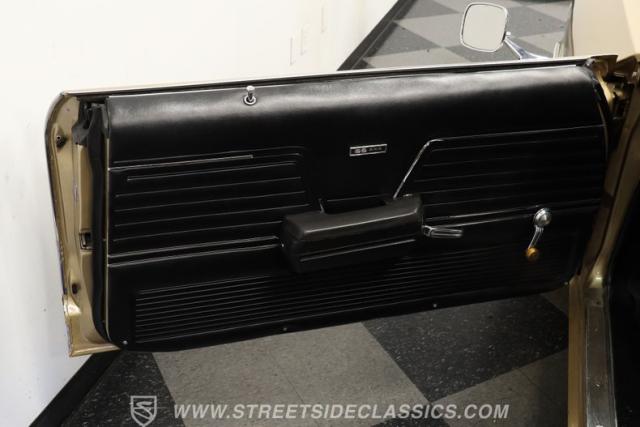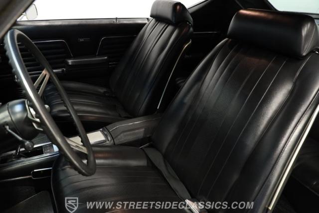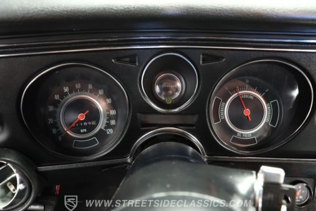 Under that expansive hood, we find a clean engine bay with a big 396-cubic-inch V-8. A chrome air cleaner and matching valve covers contrast the old-school primer-orange block and intake manifold. Fed by a single four-barrel carburetor, this big block does away with spent gases through a set of long tube headers and dual exhaust capped off with a pair of sweet-sounding FlowMaster mufflers to give this Chevelle its muscle car rumble. That power is routed through a tried-and-true Muncie M20 four-speed manual transmission before heading out to the 12-bolt rear end that transfers those ponies to the pavement via a set of 14-inch SS wheels shod in 225/70R-14 Cooper Cobra rubber.