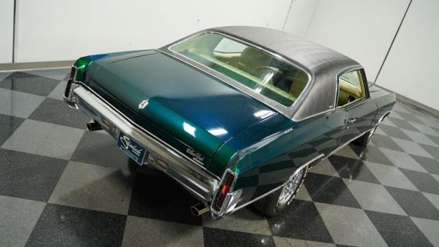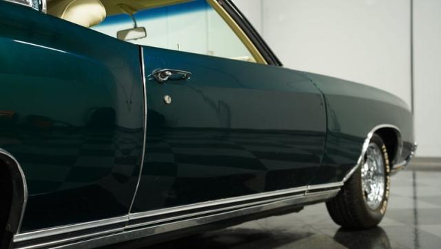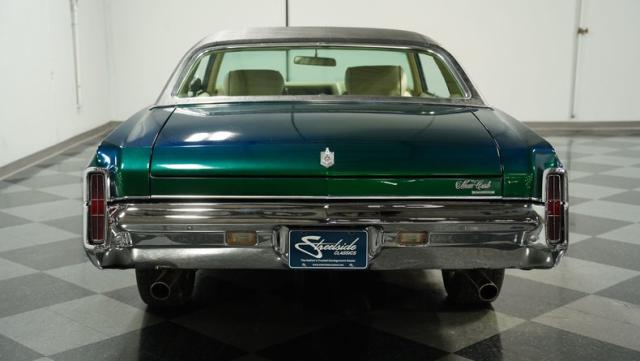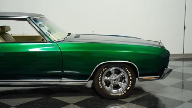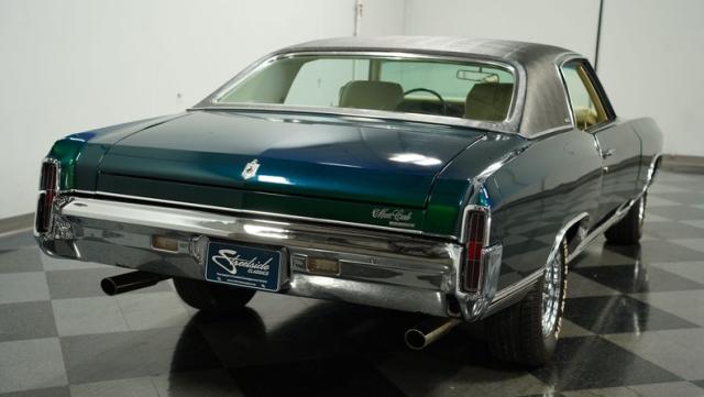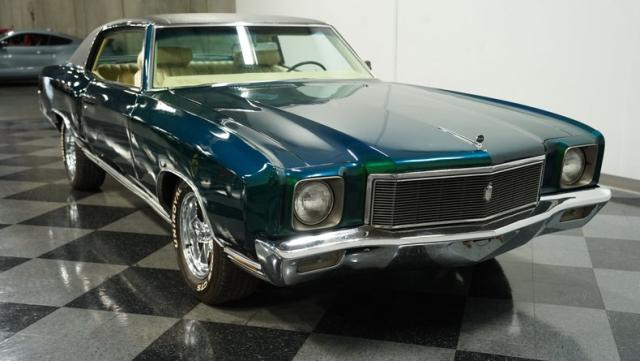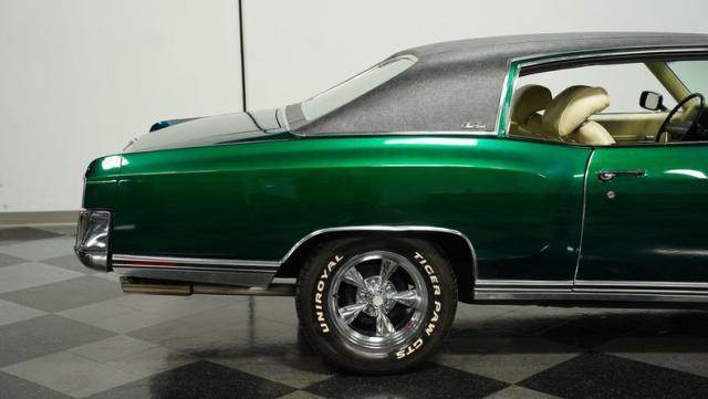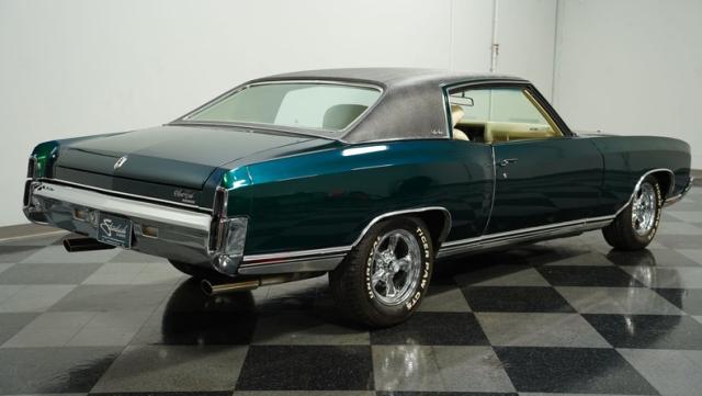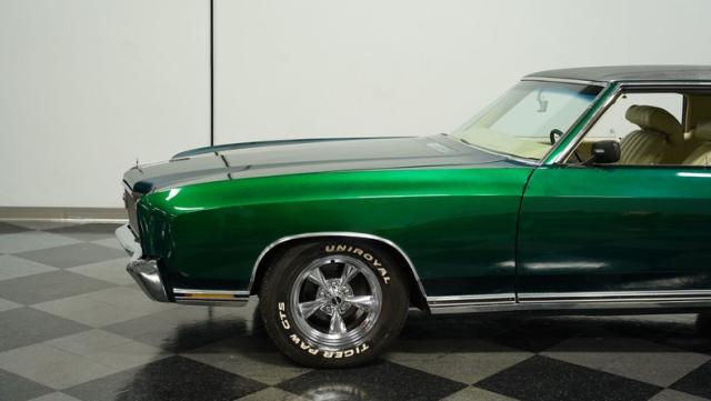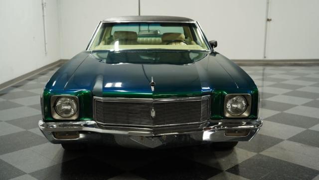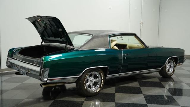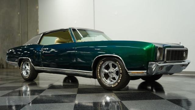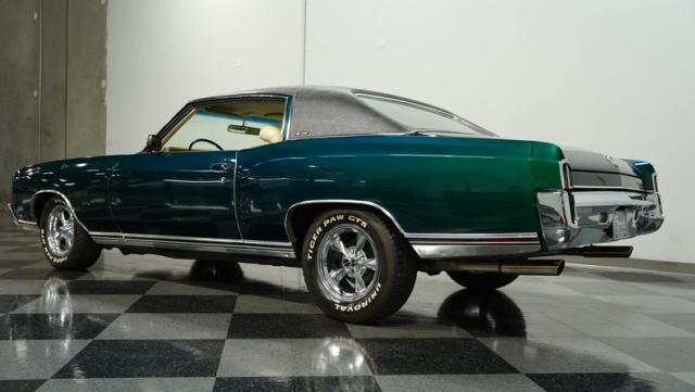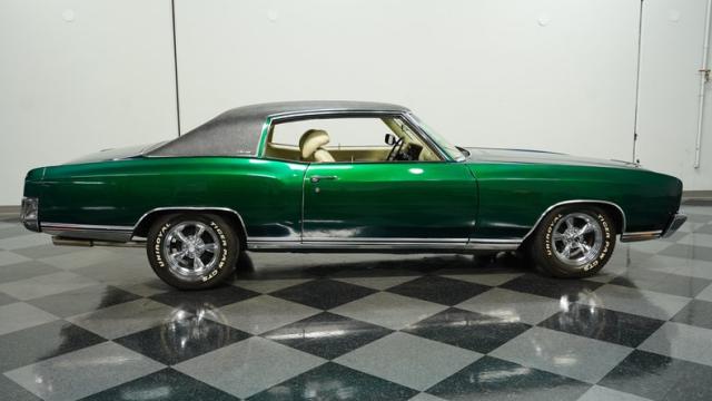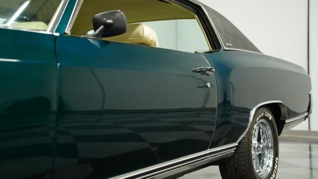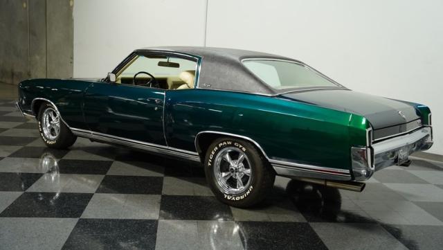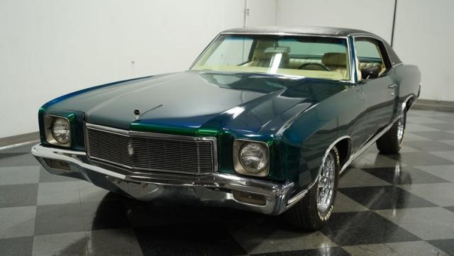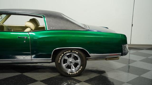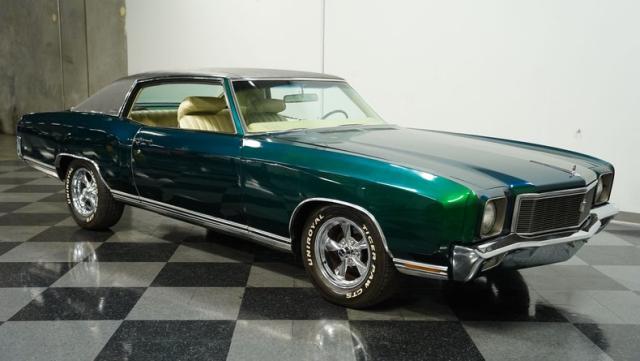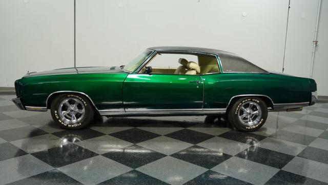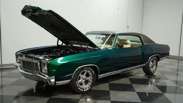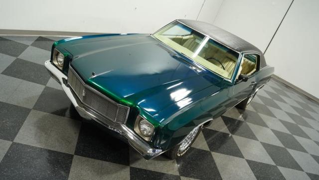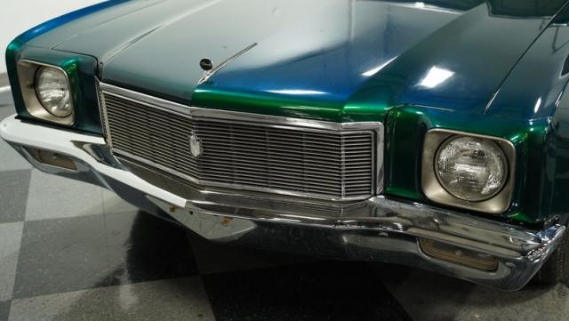 When Chevy decided in 1970 to name its first-ever personal luxury sedan after the Moroccan version of Las Vegas, it set the tone for what the Monte Carlo would be moving forward throughout its six generations of existence. This 1971 Chevrolet Monte Carlo we have for you embodies that initial push by GM to create a great cruiser that could be thought of as a \'gentleman\'s muscle car.\' While the original paint code calls for Antique Green, there is nothing antique about the Metallic Green this car was repainted with. And we want to emphasize the metallic in the Green Metallic, as the true amount of sparkle embedded in this color can only truly be appreciated in the sun. Also not completely visible from the photos is the touch of blue flake also present this fantastic paint. Not so coincidentally, according to the available paperwork, the original vinyl top also happened to be blue. Although the top is now black, the modern paint pays homage to the car\'s original color scheme in its own unique way.