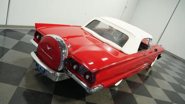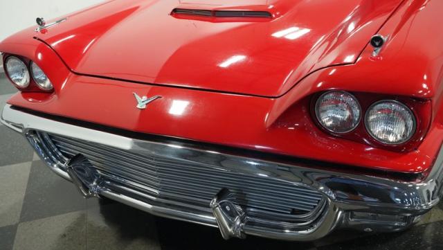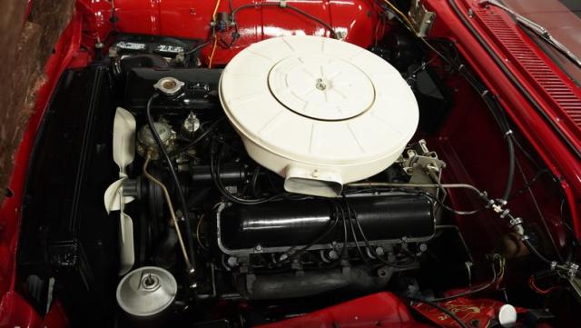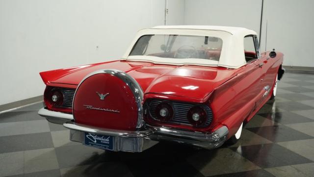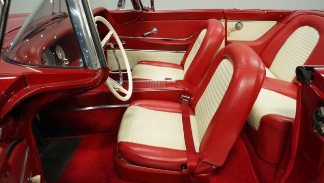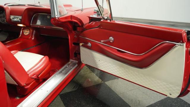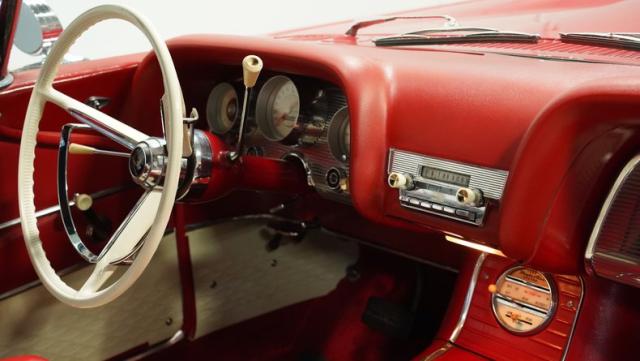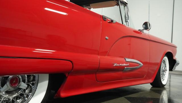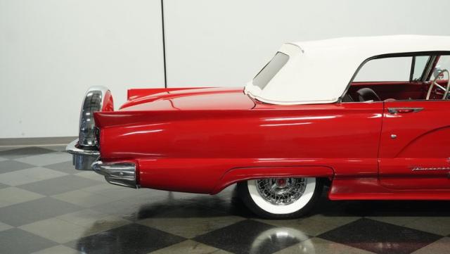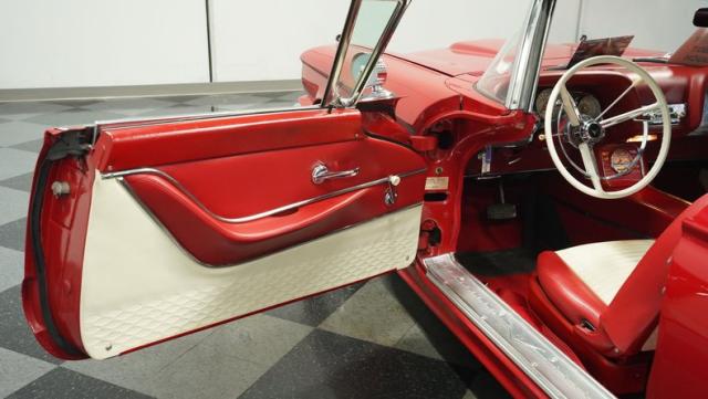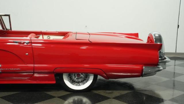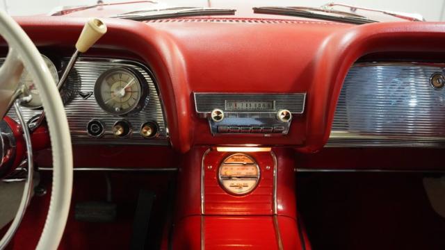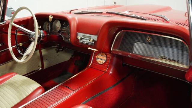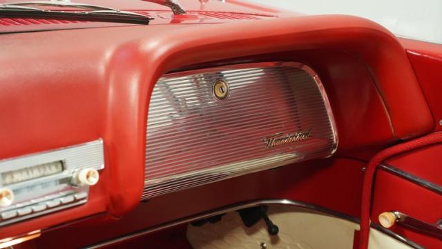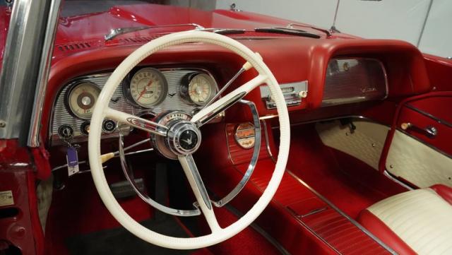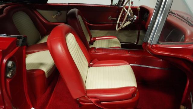 This rare Red beauty has been restored to a high standard and is absolutely stunning. Adding to the glamor and excitement of this Thunderbird are a set of Kelsey-Hayes style wire wheels wrapped with wide whitewall radial tires and a continental kit in the rear. The correct two-tone red and white interior is spectacular with bucket seats, console and disappearing white convertible top.