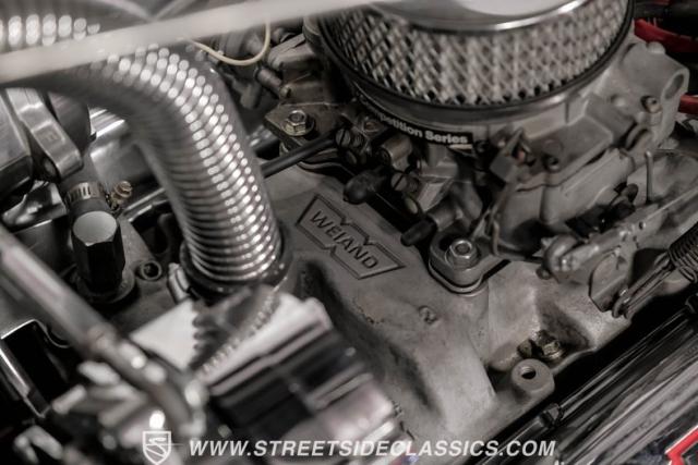 Power and performance are provided by a Chevy 350 small block engine mated to a TH350 3-speed automatic transmission. The engine features a Weiand aluminum intake manifold, Carter AFB Competition Series 4 barrel carburetor, Chrome Erson open-element air cleaner, HEI ignition, chrome Chevrolet logo valve covers, chrome alternator and long-tube headers that rumble back through a dual exhaust system equipped with great-sounding glasspack mufflers. This classic drives exceptionally well thanks to a Mustang ll style independent front suspension with power front disc brakes, rear sway bar and a limited-slip rear end.