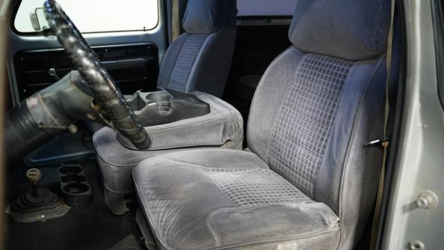 Inside, the Bronco blends classic style with modern practicality. Upgraded bucket seats with a central jump seat/console offer comfort in the gray cloth interior, while an AM/FM radio with CD player, Bluetooth, and USB/aux keeps you connected on the trail. Its durable feel and straightforward look speak to its off-road heritage.