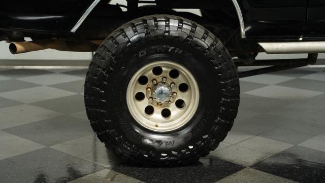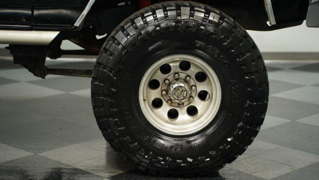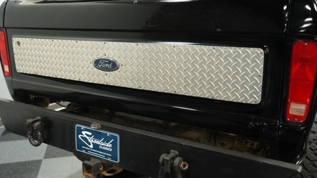 This 1979 Ford Bronco Ranger XLT 4X4 is a force of nature, its presence undeniable. The deep black paint hints at wild adventures, while the lifted suspension with massive 385/70R16 Toyo Open Country M/T tires broadcasts its off-road readiness. Custom touches like diamond plate tailgate inserts, a beefy rear bumper with tow hooks, and a wide LED light bar amplify its rugged appeal. While showing some signs of its journey with chipped paint or minor bubbling, this Bronco wears its age like a badge of honor!