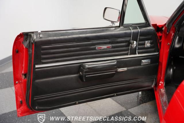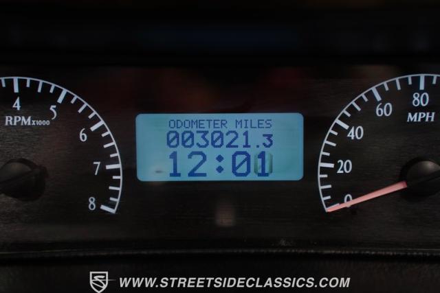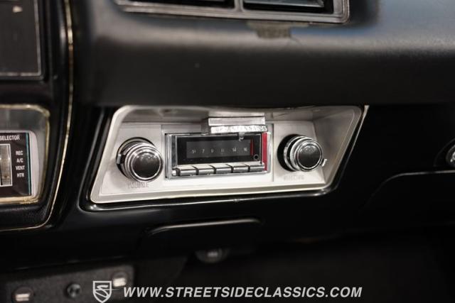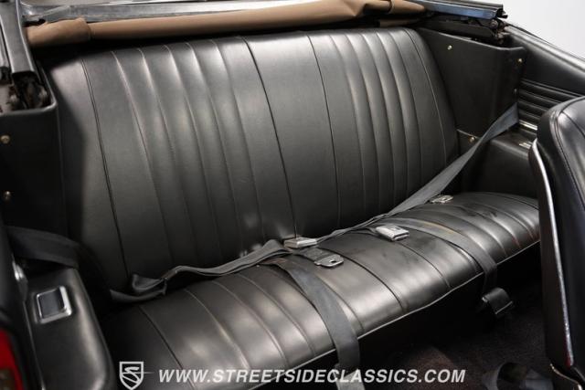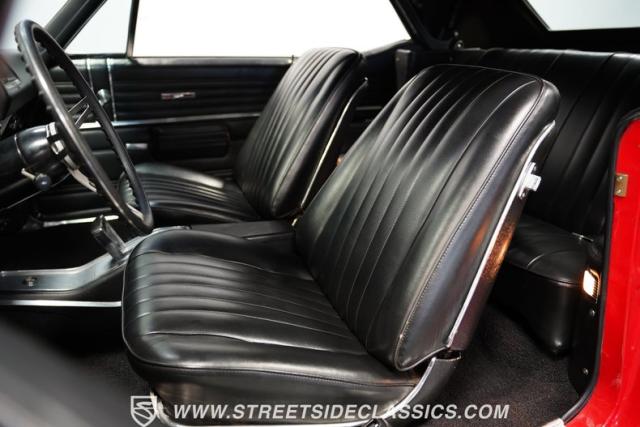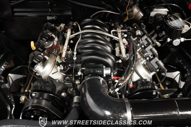 The black vinyl interior combines vintage aesthetics with contemporary functionality. Dakota Digital gauges provide clear readouts against the classic dash design. A horseshoe shifter rises from the center console, inviting the driver to engage the powertrain. The Retro radio maintains a period-correct appearance while offering modern audio capabilities. Power windows, tilt steering, and USB ports integrate seamlessly with the \'60s design. A custom sub box, relocated battery, and amplifier await in the trunk, ready to enhance your driving soundtrack.