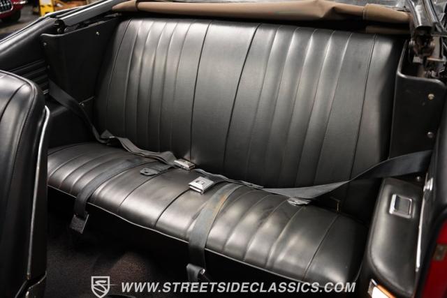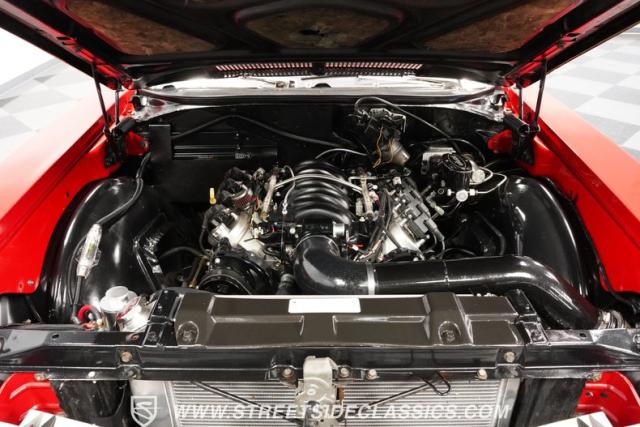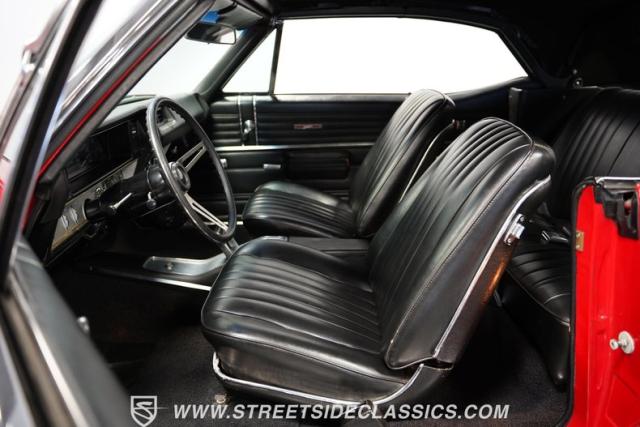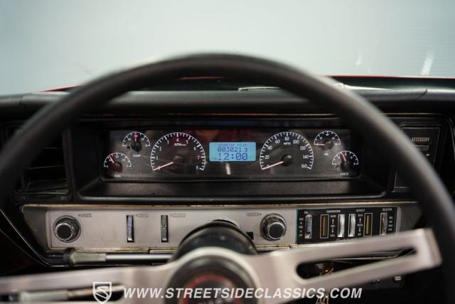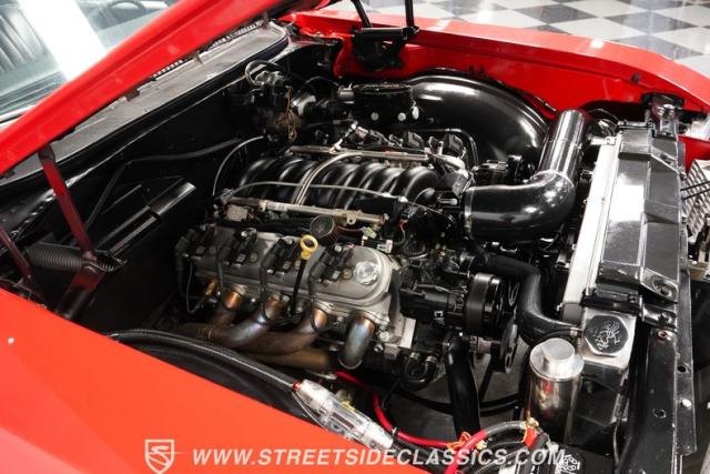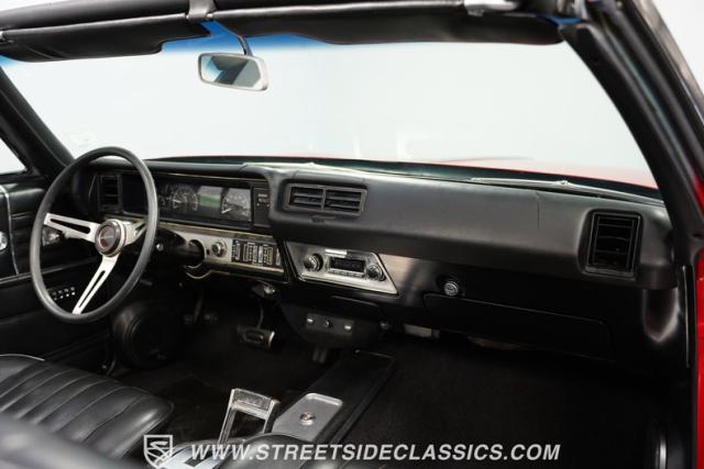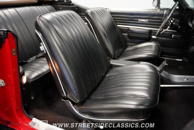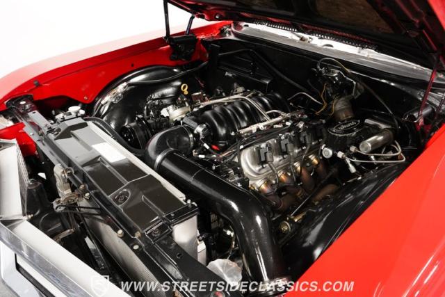 This 1968 Buick Skylark Convertible LS3 Restomod boasts 3,019 miles on its odometer since its transformation. The red exterior sparkles in the sunlight, while 22-inch Forgiato wheels fill the wheel wells with an aggressive stance. A black canvas top, when raised, adds a contrasting element to this already impressive package. Halo headlights and a power rear antenna blend modern touches with classic styling.