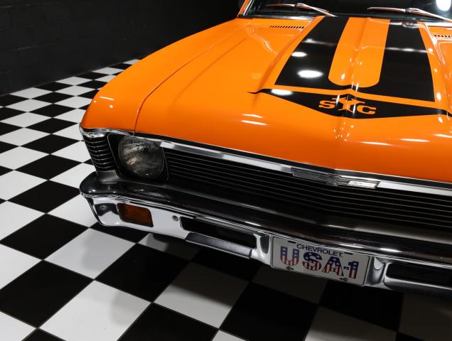 Exterior hugger orange with yenko decals, rally wheels, dual exhaust, built miles 355 engine with 4 speed transmission and posi rear end, new gas tank & air shocks-Nova is ready to roll out!