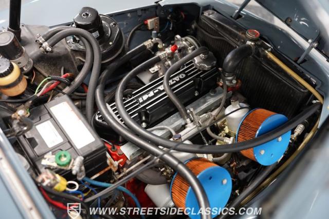 Under the hood, the Volvo PV544 is powered by a 1.8-liter I4 engine, enhanced with a B20 head for improved performance and breathing through twin SU carburetors. This setup is mated to a 4-speed manual transmission, providing tactile feedback and engagement with every shift. The vehicle\'s mechanical simplicity is its strength, with manual front disc brakes and a rear coil spring with shocks suspension setup, ensuring reliability and ease of maintenance. The clean engine bay and well-maintained components reflect a car that\'s been cherished and respected throughout its life.
