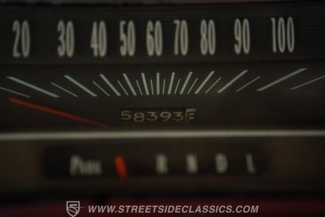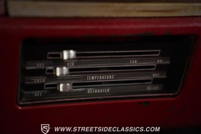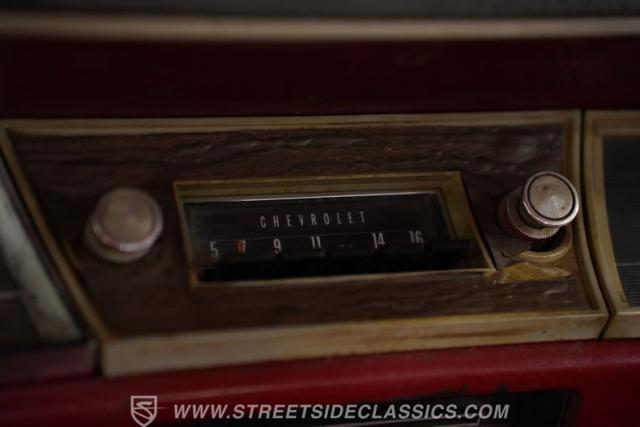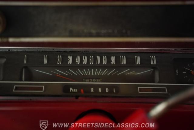 Red vinyl covers the interior surfaces, creating a bold contrast against the white exterior. A comfortable bench seat provides ample room for driver and passenger while the straightforward dashboard houses essential gauges and controls. The column-mounted shifter controls the Powerglide transmission and an AM radio sits ready to provide road trip entertainment. A recently installed headliner tops off the cabin, giving a fresh look to the upper surfaces while maintaining the factory-correct appearance throughout.