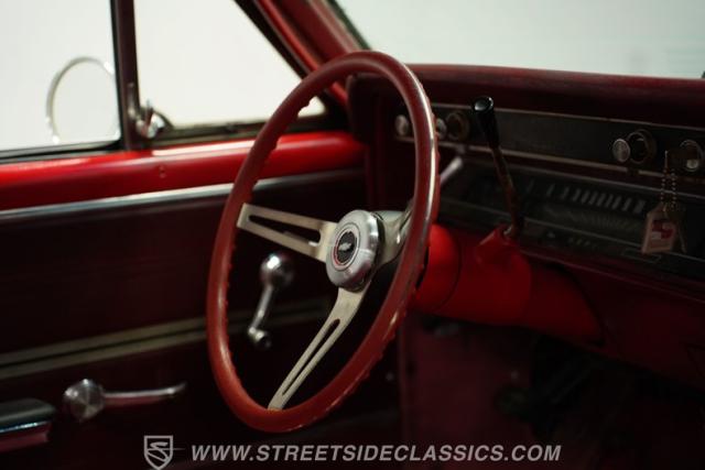 Muscle comes from a 283 cubic inch V8 engine connected to a 2-speed Powerglide automatic transmission. The mechanical package includes power steering, coil spring suspension at all four corners, and helper springs added to the rear. An aluminum radiator keeps operating temperatures in check during summer cruising. The dual exhaust system adds a proper V8 soundtrack when accelerating, and the 10-bolt rear axle puts power to the pavement with appropriate strength for the drivetrain.