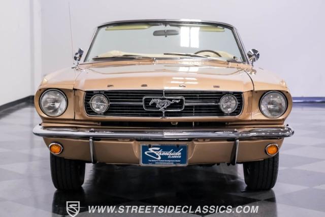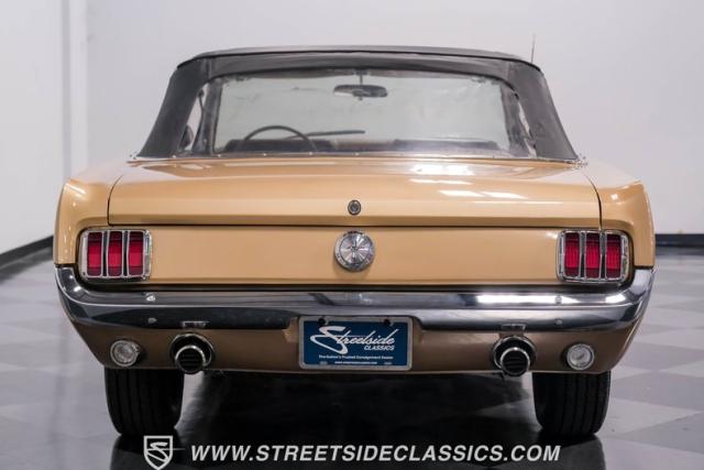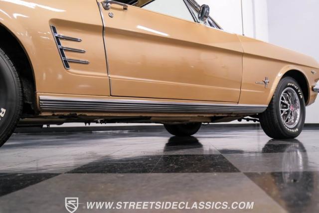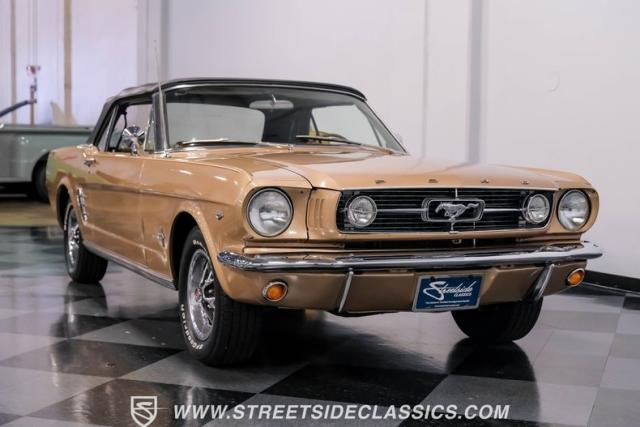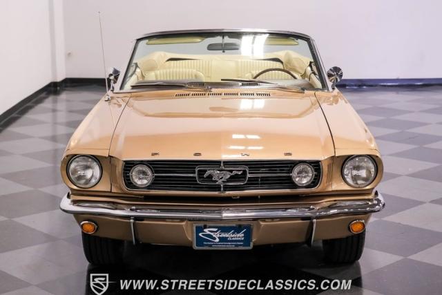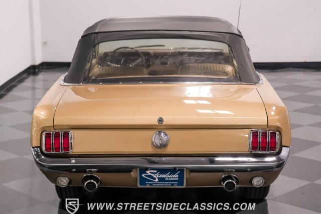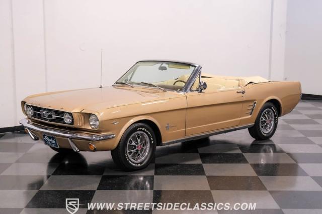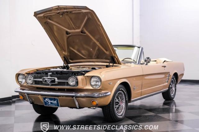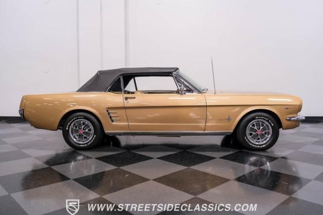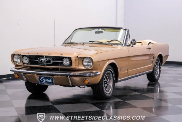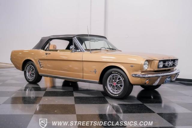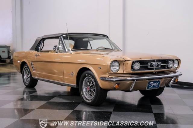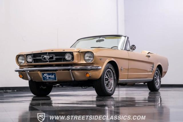 If you have not experienced the sensation of driving down an open highway in a drop-top first-generation Mustang, you are missing out on one of life\'s true pleasures. This Antique Bronze repainted 1966 Ford Mustang Convertible offers up a unique and factory correct color combination when matched with its black power top and Palomino beige interior. The fog lights, exhaust tips, rear valance, and wheels are all GT-style, adding a sportier look to an already beautiful car.