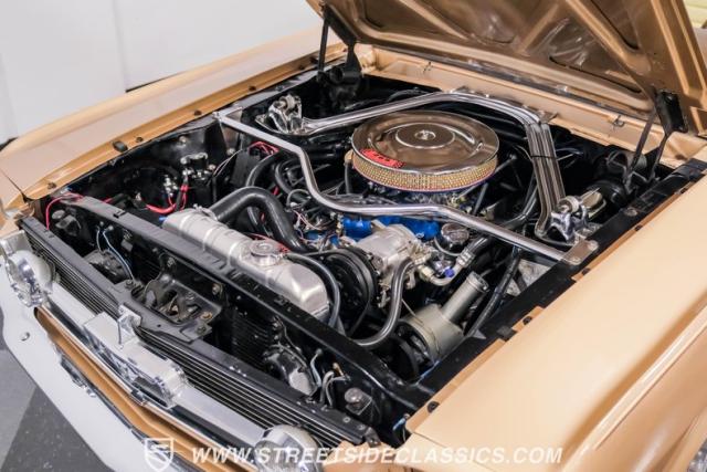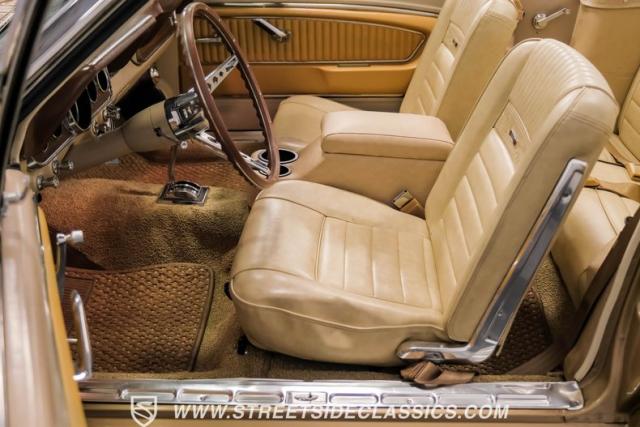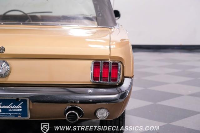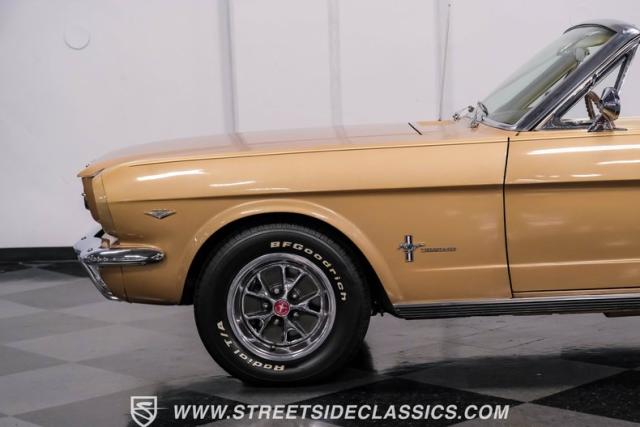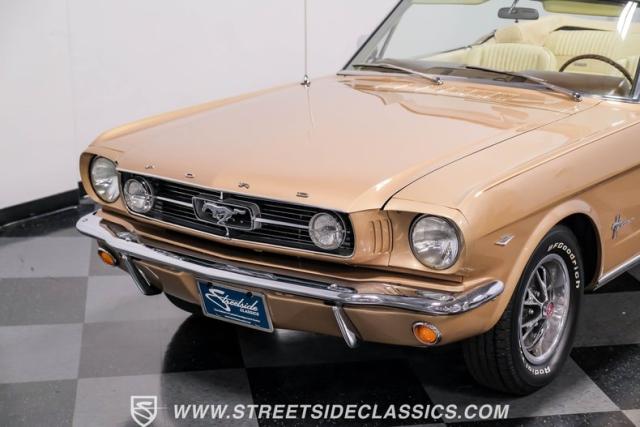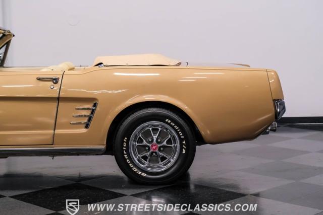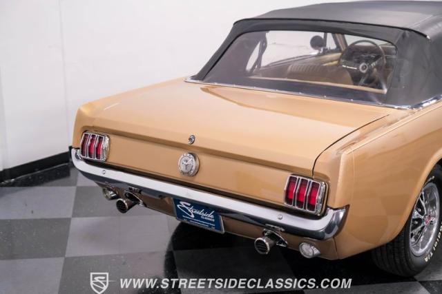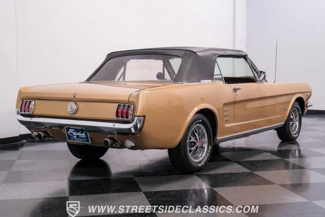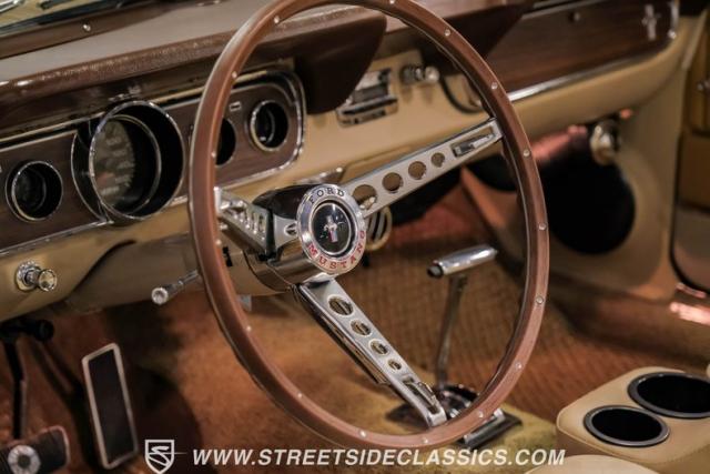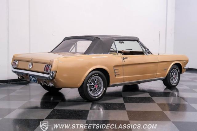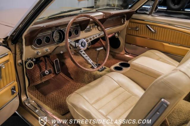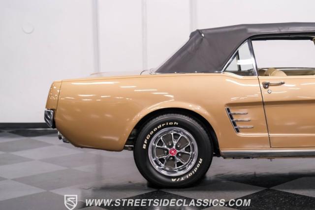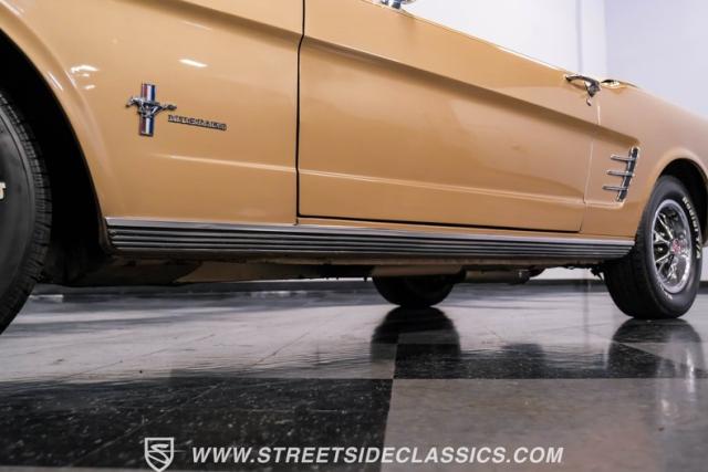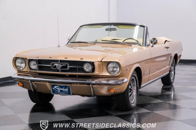 If you have not experienced the sensation of driving down an open highway in a drop-top first-generation Mustang, you are missing out on one of life\'s true pleasures. This Antique Bronze repainted 1966 Ford Mustang Convertible offers up a unique and factory correct color combination when matched with its black power top and Palomino beige interior. The fog lights, exhaust tips, rear valance, and wheels are all GT-style, adding a sportier look to an already beautiful car.