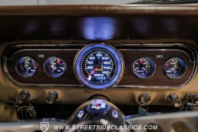 Inside, this Pony Car features a Pony Interior and a few tastefully done upgrades, like a set of Intelitronix gauges, a retro-looking AM/FM/Aux head unit powering kick panel speakers, a wood-grip three-spoke steering wheel, and a removable center console complete with dual cup holders.