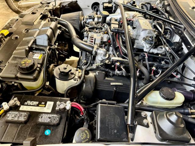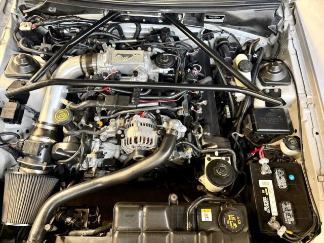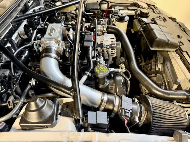> Performance and Handling: Under the hood roars a 4.6L SOHC V8 engine producing 285 horsepower, paired with a crisp five-speed manual transmission. The Saleen suspension system and power four-wheel disc brakes provide exceptional handling and stopping power. The car also has 3.27 gears. Enjoy the throaty sound of the dual exhaust system as you cruise down the road. The car rides on 18-inch Saleen chrome five-spoke wheels, with staggered-width Arroyo radial tires (235/40 front, 265/35 rear) ensuring optimal grip and performance.