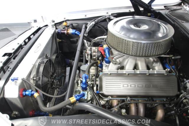 With so few miles on the build, even the clean and mean presentation of the motor really showcases the freshness. This is a legendary 440 cubic-inch V8, and this one was built by the masters at Ernie Elliott, Inc. Oh yes, this one has a true NASCAR pedigree, and the build even utilizes an R5 aluminum racing block. It also has a Holley 850 CFM four-barrel carburetor, high-rise intake, steel braided lines, AN fittings, dual Crane ignition boxes, dry sump oil system, and a C&R racing radiator. Long tube headers add even more power before feeding into an H-pipe dual exhaust with Borla mufflers. The XTRAC sequential six-speed gearbox is a true race-ready piece, and even includes a Tilton five-disc carbon clutch and Quick Time bellhousing. This feeds a Driveshaft Shop carbon fiber driveshaft on its way to the Speedway Engineering floating Ford 9-inch 5.00 rear with TruTrac differential. As you look at the undercarriage photos, you\'re going to see a serious investment in the suspension with a reinforced tubular front end, thick Schroeder sway bar, and Hyperco rear composite rear leaf springs. Add in power steering, modern ZR-rated tires, and four-wheel disc brakes, and you know this restomod knows how to bring its power to the streets.