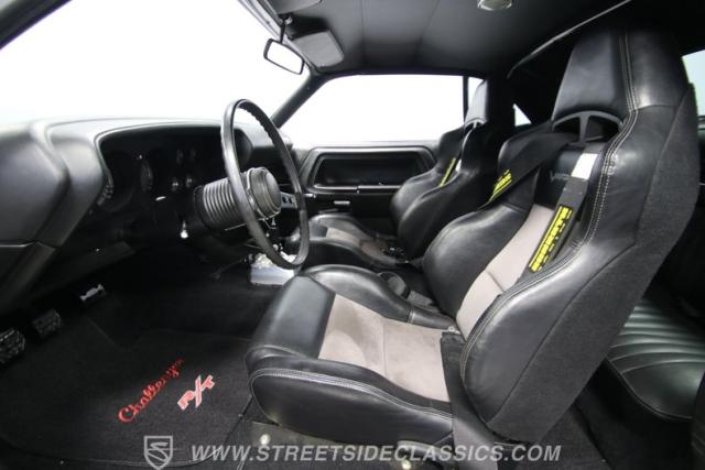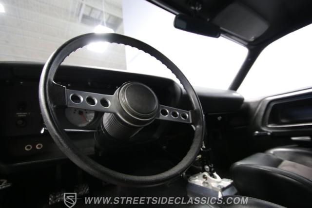 The interior continues to tell everyone it\'s serious about performance. Those modern Viper sports seats up front keep you planted far better than anything that came out of the \'70s, and the four-point harnesses are there to tell you this Mopar is the real deal. The belts connect into the roll cage that adds real strength as it extends all the way into the trunk. This has fundamentals, like the door panels and carpeting. There are even cool classic details, like the Mopar sports steering wheel. But with the upgraded XTRAC sports shifter and dominating glow of the Spek Pro gauges, you absolutely know this is a restomod.
