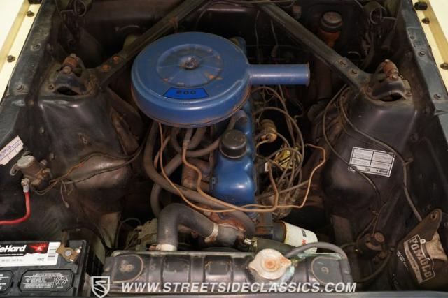 Under its steel hood, we find a 200-cubic-inch overhead-valve inline-six-cylinder engine. Outfitted with its cast iron block and head, hydraulic lifters, and one barrel carburetor, this engine was created to efficient and dependable, producing a healthy 120 horsepower and 190 pound-feet of torque. Power is routed through a C4 three-speed automatic transmission before heading out to the solid-axle rear end.