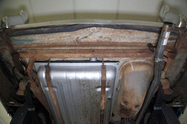 Nicely preserved noting some mild to heavy surface rust depending on what you are looking at. A new fuel tank is now on and newer stock style exhaust. Floor pans and rockers are showing some surface rust, patina and road dirt from many years of accumulation. Independent coil springs for the front suspension and leaf springs are on the back. Drum brakes are noted all around. That razzes my berries.