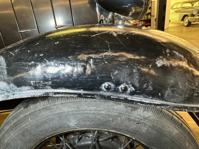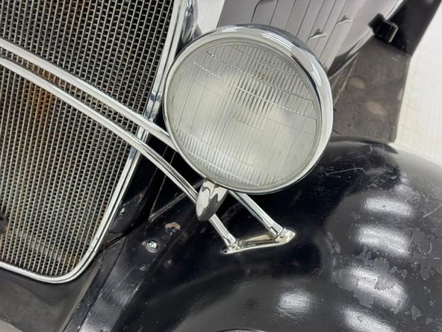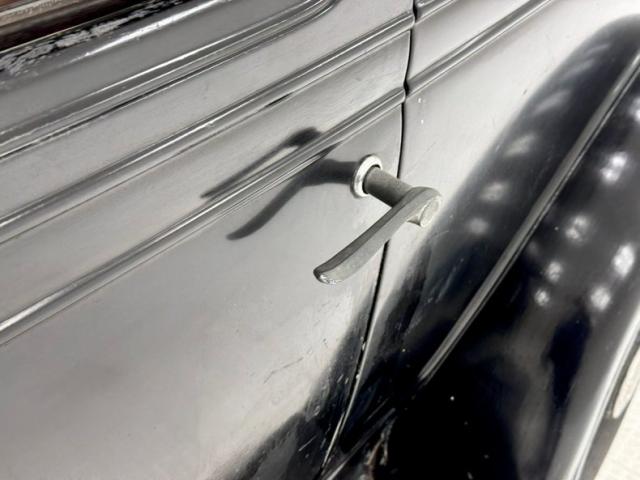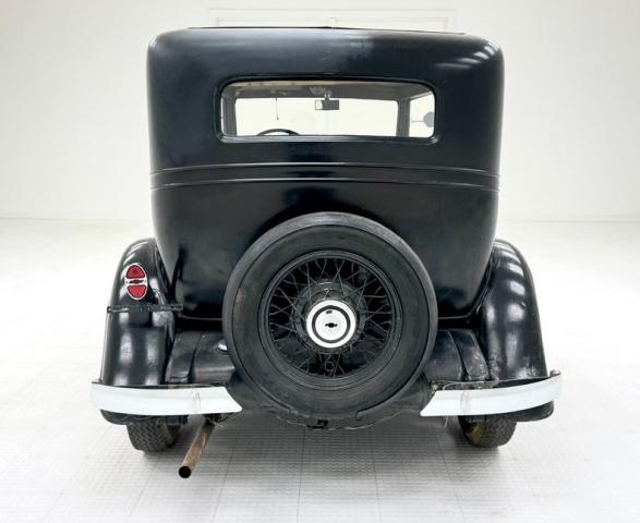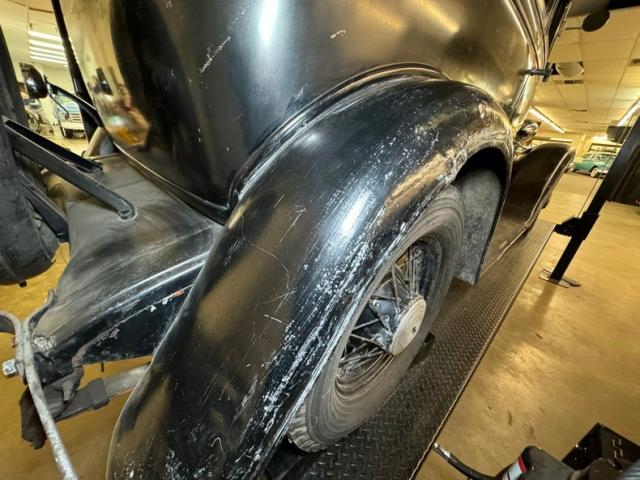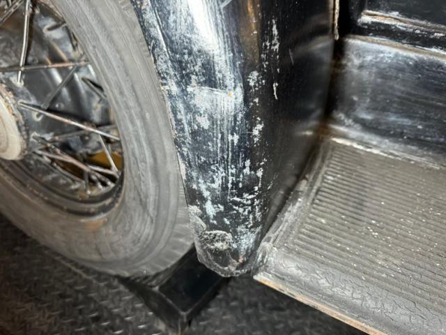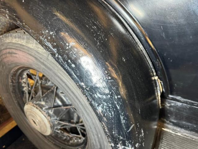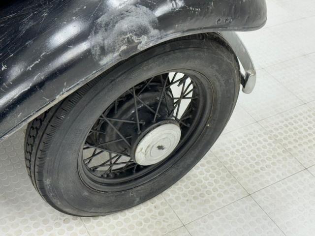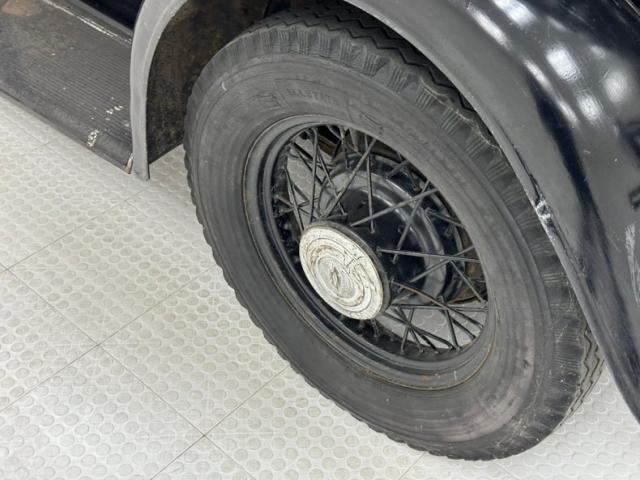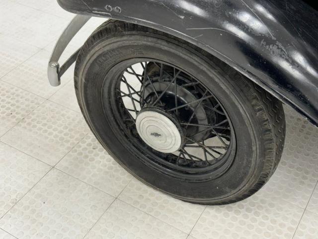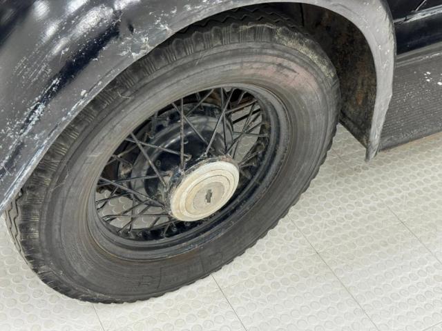 Rough black paint in different shades and textures covers the steel panels of the car and tells some stories that are nearly 100 years old. Meanwhile, the chrome grille, front bumper, and lightbar assembly are in good condition although lacking the radiator cap/ornament. Opening vents replace the louvers found on the 1931 Independence, and are a fantastic design cue. 19-inch wire wheels are painted black and sit under extended fenders that connect to a wide rubber coated running board. The single tail light has the Chevy bowtie cut out of the trim, which is a pretty nice feature and may at one time have had a plastic Chevrolet branded piece in that space. A spare wheel and tire are mounted on the back. The car, including its metal hardware, would benefit from restoration, but most pieces are intact, and the glass is all there.