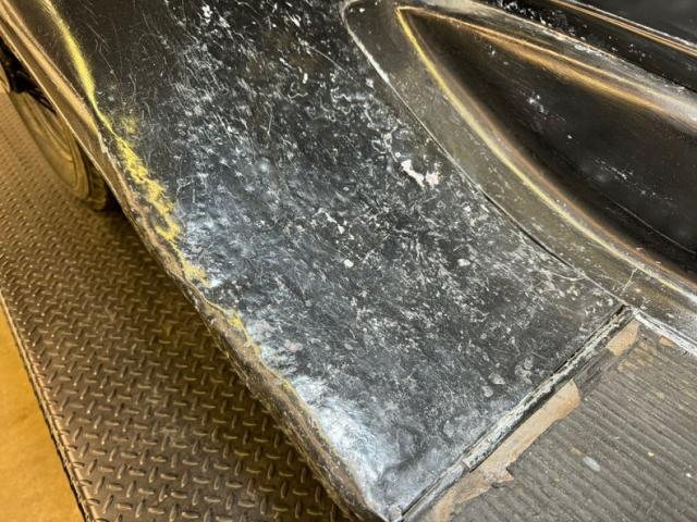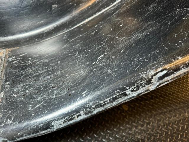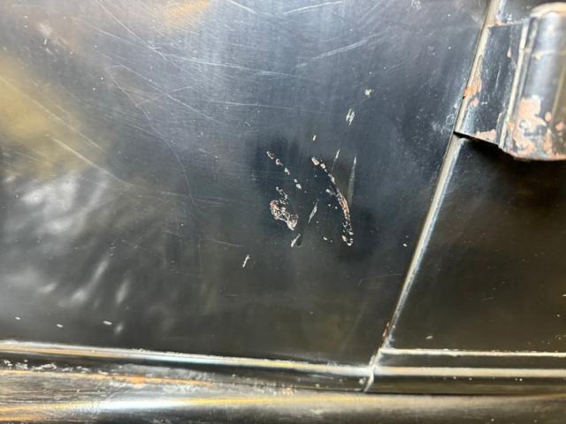 All in all, driver quality underneath but complete. There\'s a substantial build up of grease on the underside of the engine and transmission, the inner wheel components and the rear differential. Leaf springs handle the suspension front and rear and a single exhaust is present, covered with surface rust, and finds its way to a muffler and then out the back via a corrugated pipe.