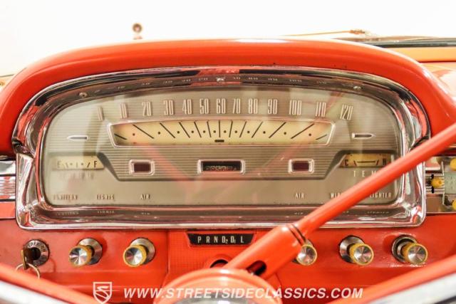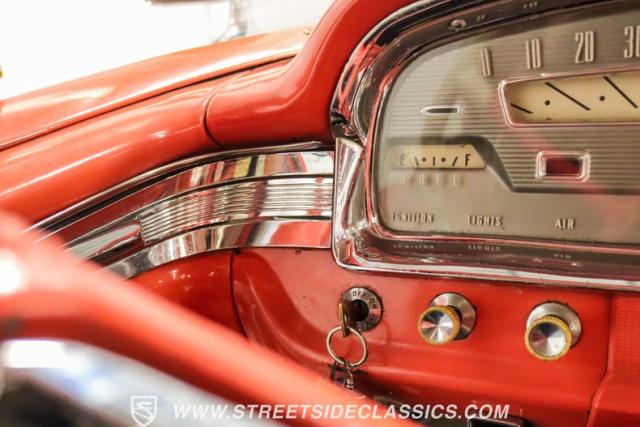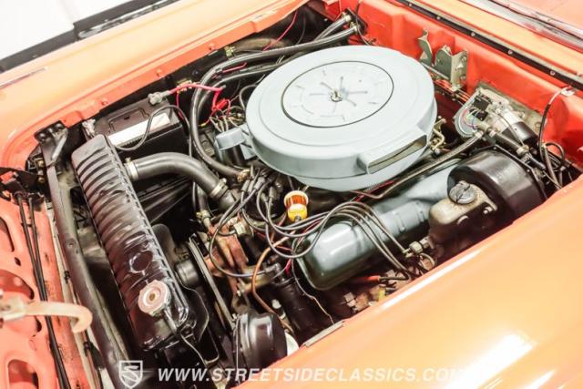 Under that long, front-hinged hood, we find a 332 cubic-inch overhead valve V-8 topped with a single two-barrel carb. When new, that engine produced an advertised 225 hp and 325 lb-ft of torque. Power is then routed from the motor through a two-speed Cruise-O-Matic automatic transmission before heading out to the nine-inch rear. A set of 215/75R-14 Hankook tires wrap around fourteen-inch wheels at all four corners, while power drums all-around handle braking duties.
