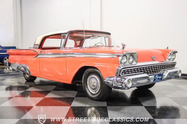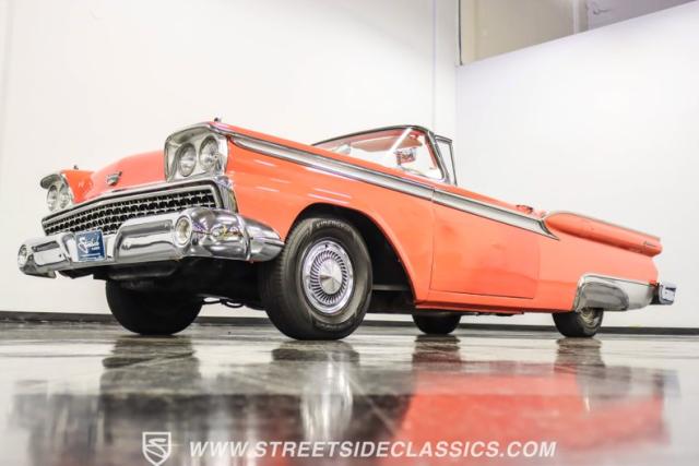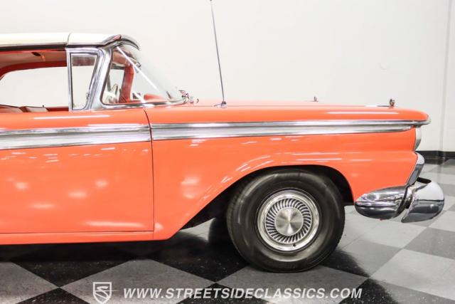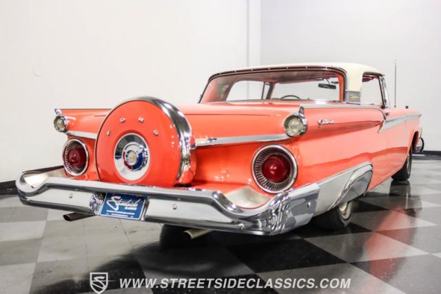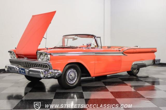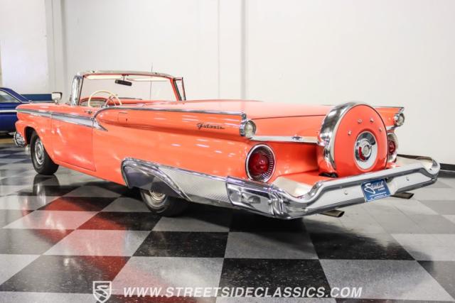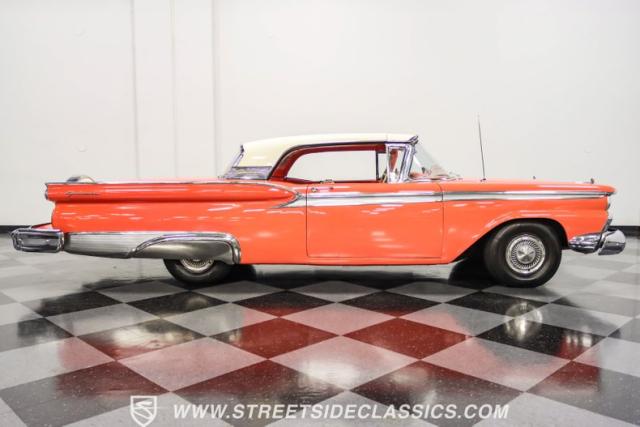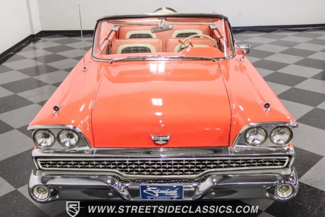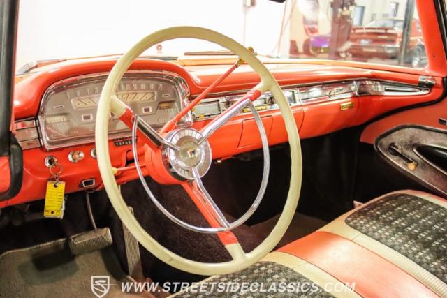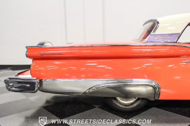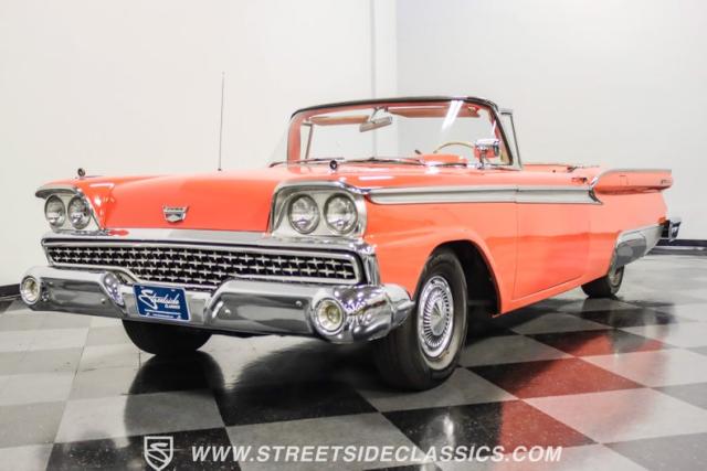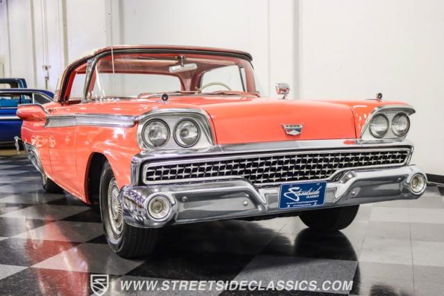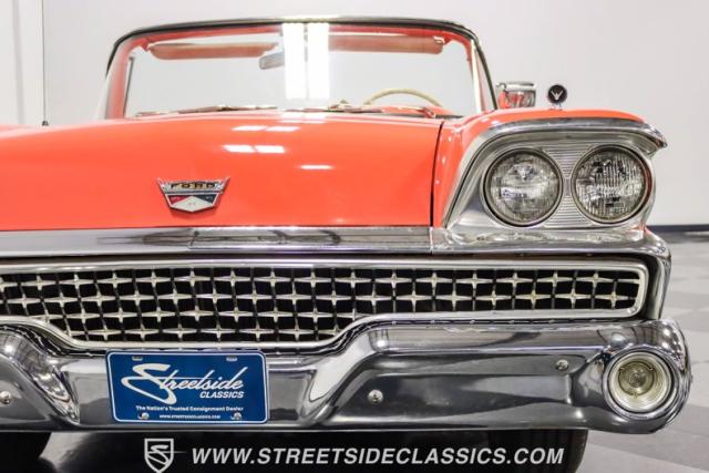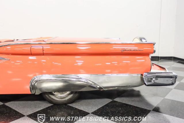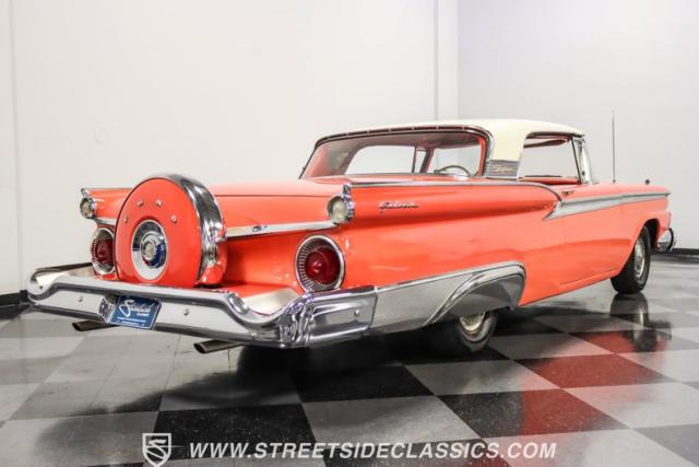 In the late 1950s, Ford wanted to capitalize on the Space Race dominating the planet. So, in 1957, the Blue Oval decided to launch (pun intended) the Galaxie trim as the top-tier option for its Fairlane line of vehicles. Fittingly enough, also in 1957, Ford decided to create a drop-top version of the Fairlane, allowing owners to look up at the target of all that excitement more easily. The retractable folding hardtop lasted just two years in total. But this 1959 Ford Fairlane 500 Galaxie Skyliner we have for you today represents the one and only year of the Galaxie Skyliner. With its power-folding hardtop, Continental Kit, and unmistakable \'50s fins, this Galaxie is out of this world cool. Inside, we find a very stock and correct-appearing Geranium, black cloth, and vinyl interior that is as 1950s as drive-in movies and poodle skirts. The AM radio remains on display and complements the bench seating and column shifter to complete the package.