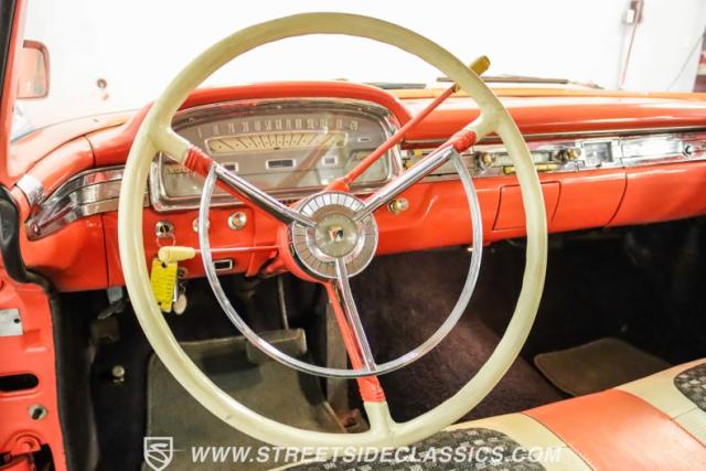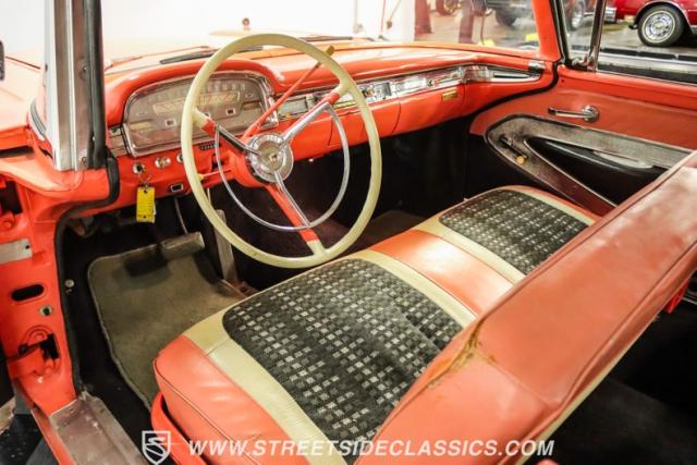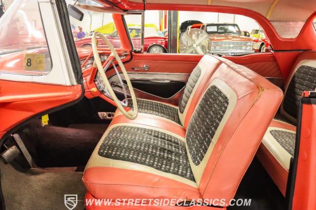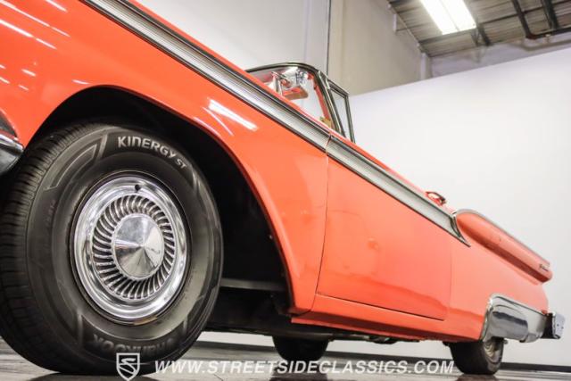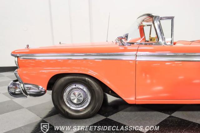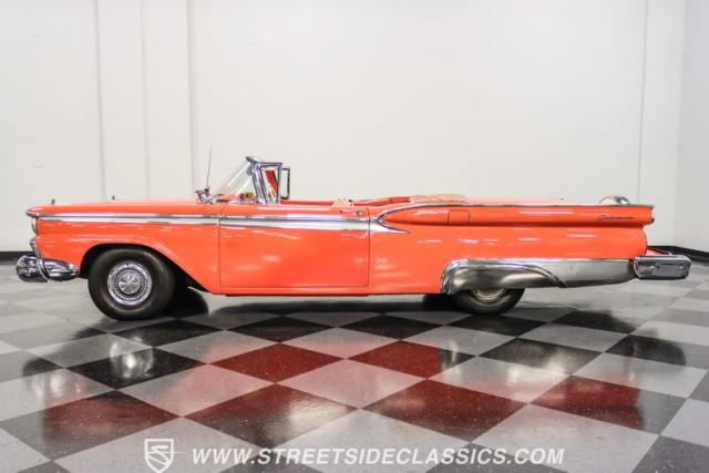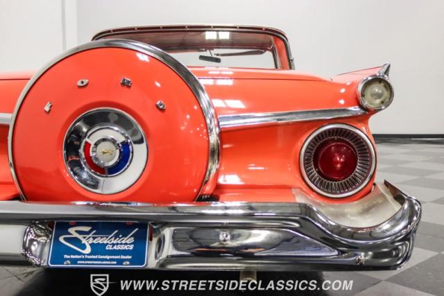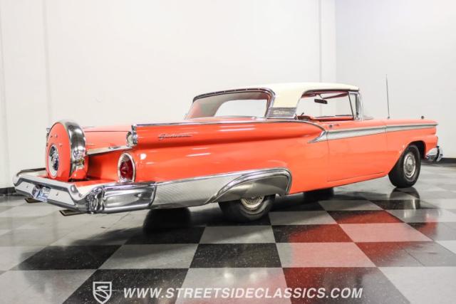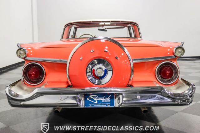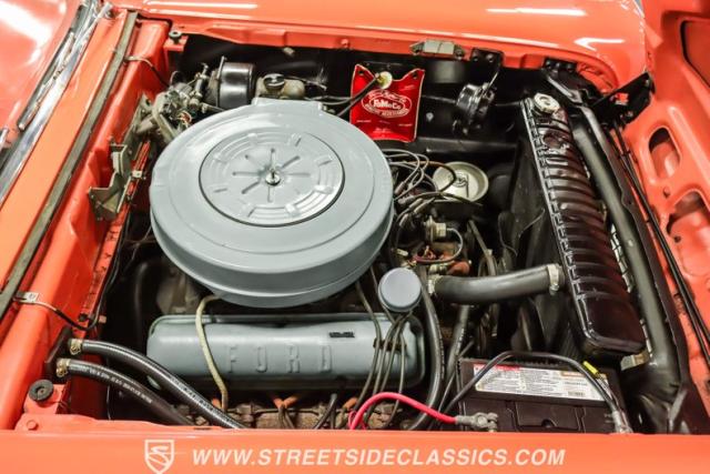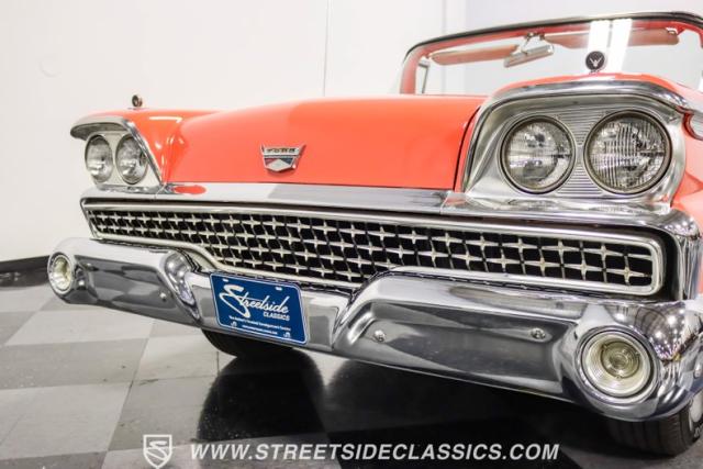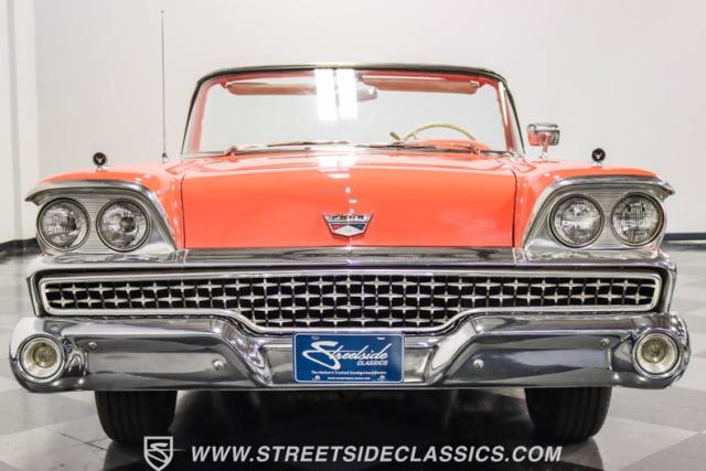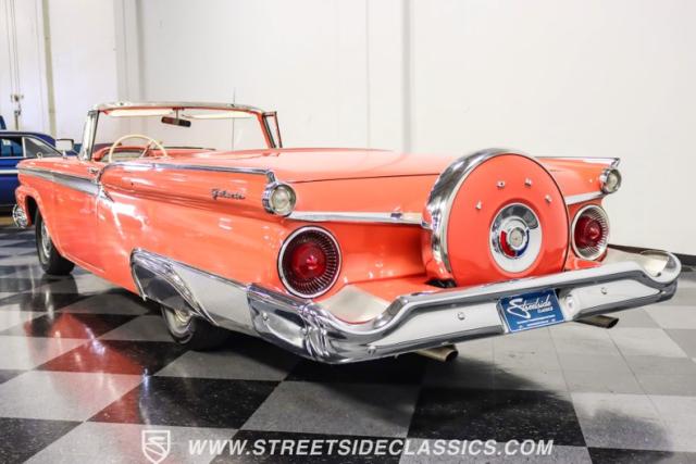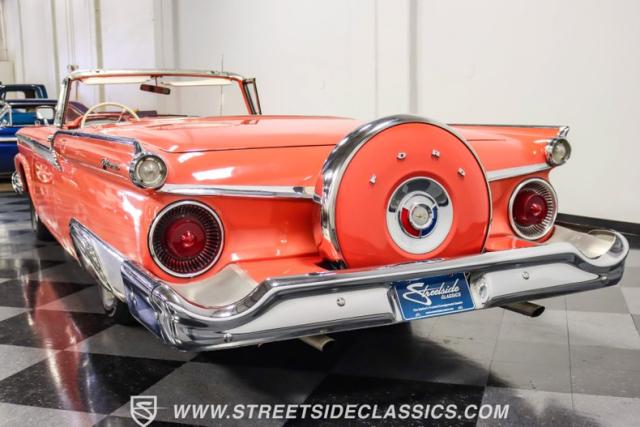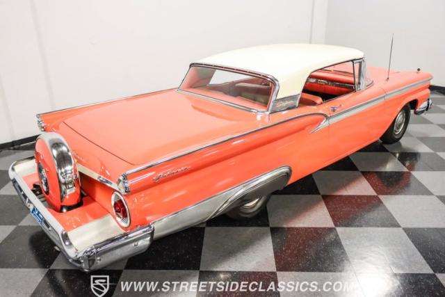 In the late 1950s, Ford wanted to capitalize on the Space Race dominating the planet. So, in 1957, the Blue Oval decided to launch (pun intended) the Galaxie trim as the top-tier option for its Fairlane line of vehicles. Fittingly enough, also in 1957, Ford decided to create a drop-top version of the Fairlane, allowing owners to look up at the target of all that excitement more easily. The retractable folding hardtop lasted just two years in total. But this 1959 Ford Fairlane 500 Galaxie Skyliner we have for you today represents the one and only year of the Galaxie Skyliner. With its power-folding hardtop, Continental Kit, and unmistakable \'50s fins, this Galaxie is out of this world cool. Inside, we find a very stock and correct-appearing Geranium, black cloth, and vinyl interior that is as 1950s as drive-in movies and poodle skirts. The AM radio remains on display and complements the bench seating and column shifter to complete the package.