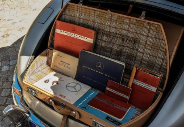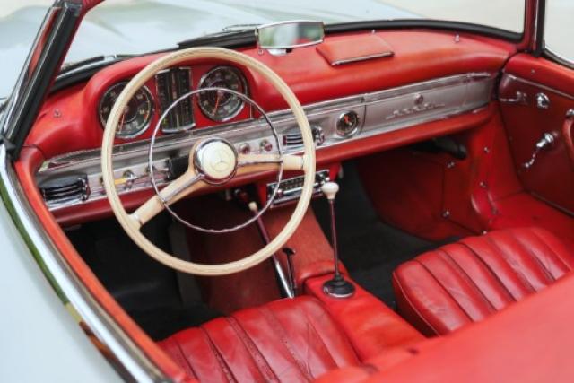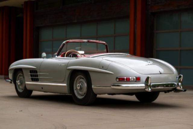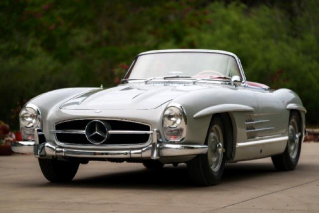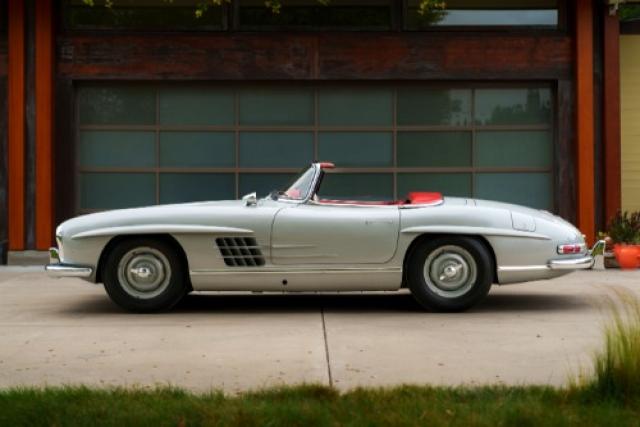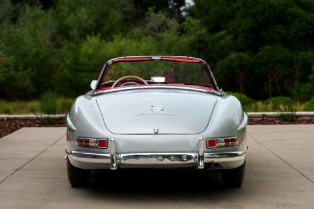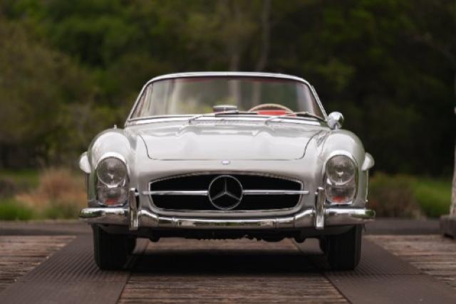 1957 Mercedes-Benz 300SL Factory Rudge Wheel RoadsterThis W198 Mercedes-Benz 300SL Roadster is 1 of just 27 examples delivered new with Rudge \'knock-off\' wheels while retaining its factory applied original DB 180 Silbergrau Metallic paint and 1079 Rot leather. This 300SL retains all of its original \'numbers matching\' components and retains all five of its original, date-coded 300SL Roadster-specific Rudge wheels along with its original Hepco luggage suitcases. Having never before been exhibited on a concours showfield in the United States, this exceptional W198 Roadster checks all of the boxes of a preservation show winner with unusual rarity throughout and is mechanically a star, fully sorted for long distance touring use.A Confluence Of Spectacular RarityThe ability to have Rudge \"knock-off\" wheels fitted to a 300SL Roadster when it was delivered new was a special order option continued over from the 300SL \"Gullwing\" Coupe production run. Of the 1400 Gullwings produced between 1954 and 1957, estimates suggest that around 350 of them, or 25%, were delivered new with the racing inspired, center-locking Rudge wheels installed. 300SL Roadsters delivered new with these special wheels, however, were far more rare. Of the 1,858 Mercedes-Benz 300SL Roadsters produced between 1957 and 1963, a mere 27 of them, less than 1.5% of the total Roadster production, were delivered new with the now ultra-desirable option of Rudges. So rare are 300SL Roadsters delivered new with Rudge wheels, that the known number of these specially optioned cars produced by Mercedes-Benz is less than that of aluminum bodied 300SL Gullwings, of which 29 are currently known. From a collectibility standpoint, the \"Factory Rudge\" designation is indeed the rarest and most coveted original option for the W198 Roadster model, and by a significant margin.In addition to factory Rudge wheel Roadster examples being significantly rarer than factory Rudge Gullwings, the wheels themselves are also different in size. Whereas the Gullwing Rudge wheels are 5 inches in width, the Roadster Rudge wheels are larger at 5.5 inches, giving them a wider footprint, and thus, better grip to the road. The wheel faces of original Roadster Rudges are also distinctively stamped with \"300SLRO\", further differentiating them from the Gullwing wheels that came before them. As it would turn out, 1957 would be the final full production year for the fitting of Rudge or other knock-off wheels to new cars in Germany. In 1958, new German transportation laws prohibited the use of these \"knock-off\" wheels, affecting not only Mercedes-Benz but also other famous German manufacturers such as BMW and Porsche.The manner in which these special \"knock-off\" wheels transform the presence of a 300SL is of such desirability today that aftermarket reproduction versions of the original Rudge wheels have been manufactured at great expense and have been fitted to hundreds of 300SL Roadsters that otherwise originally came fitted with standard bolt-on hubcap wheels. The precious few examples special ordered new with Rudge wheels are standard bearers within the Mercedes-Benz 300SL Roadster production run, with most of the \'Factory Rudge\' Roadsters residing as permanent fixtures in the some of world\'s finest collections. Very rarely do they come about as for sale.According to a copy of its factory data card, this exceptionally rare and original 300 SL Roadster left the factory at Stuttgart-Unterturkheim on October 21st, 1957 and was originally delivered to North America via Mercedes-Benz Distributors Western Ltd. of Vancouver in late 1957. The Mercedes was finished in DB 180 Silbergrau Metallic (Silver-Grey Metallic) paint over a 1079 Rot (Red) leather interior with a Schwarz (Black) top; all of which is retained today in a beautifully patina factory-original condition. Further specifications included instruments in English, sealed-beam headlights, 3.89:1 rear-axle ratio, Becker Mexico radio, two-piece luggage set, and, most notably, 5.5x15 KPZ Rudge knock-off wheels. The car was and remains equipped with engine no. 198.980.7500338, gearbox no. 216, front axle nos. 367 (left) and 366 (right), rear axle no. 374, and body no. 198.042.7500268, all retained by the car today.Merle Solland, second owner of chassis 7500348 300SL Roadster, recorded recollections of his stewardship of the car in a professionally compiled history book that accompanies the 300SL today, noting that the car\'s first owner was a successful commercial apple farmer hailing from Wenatchee, Washington. The apple orchard owner\'s daughter came to love the sporty open-topped W198 Mercedes-Benz and, as a teenager, she would drive it around the family\'s orchard property. However, as she approached legal driving age, her father decided a less powerful, and perhaps more modest automobile would be a better choice.Mr. Solland, a world-record-holding hydroplane racer, learned