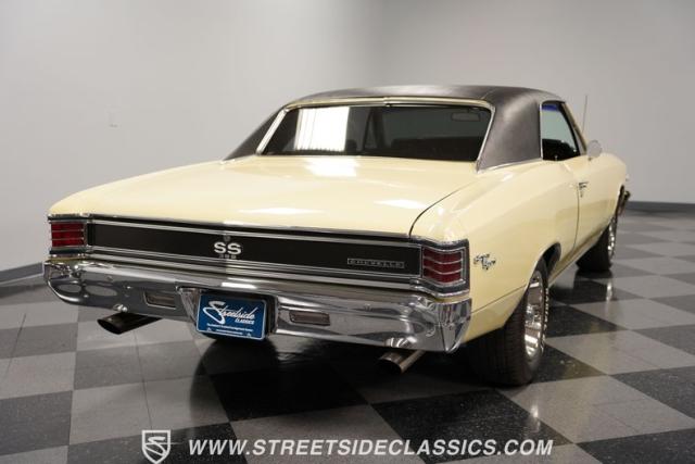 Over the past few decades, the Chevrolet brand has developed a tedious yet highly successful habit of systematically reviving iconic packages and nameplates. ZR1, ZR2, SS, Blazer, and Camaro, to name a few. But one name that hasn\'t seen any action, at least outside of GM\'s design studios, is the vaunted Chevelle. And frankly, that\'s probably a good thing since it makes classics like this 1967 Chevelle SS396 Tribute all the more valuable in the hearts and minds of true enthusiasts. Because this Chevy is a tribute car, there was ample incentive to upgrade to a full 454 cubic inches of big block brawn under the hood. Naturally, that rowdy V8 is iced with snazzy chrome valve covers, an Edelbrock intake, an Edelbrock 4-barrel, and long tube headers. That mill\'s power is routed through a TH350 three-speed on its way to a 10-bolt rear axle. Front and rear coil-over shocks hide behind power drums and traditional, 15-inch Chevrolet Rally Wheels shod in 245/60R15 rubber. An attractive Black and Butternut Yellow profile, which has benefitted from a full repaint, looks subtly aggressive thanks to the car\'s great stance. Behind the doors, a simple cockpit invites one lucky driver and a couple of lucky passengers into the all-business world of American muscle car black. Choice, aftermarket speed parts are sprinkled through a mostly stock interior to hint that this car might be a little more than your average \'60s family hauler. An old-school three-spoke steering wheel laps a column-mounted tach, tracking how quickly the big 454 turns. The car\'s original HVAC controls shade modern analog gauges that monitor oil pressure, battery health, and water temperature.