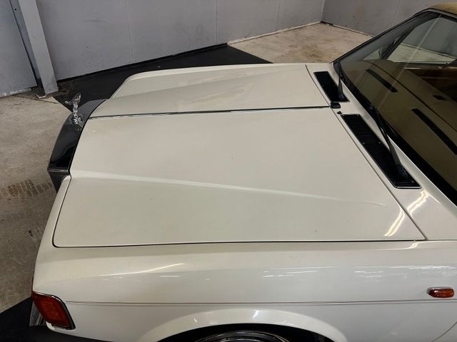 Painted White with a tan vinyl top. All the chrome is like new, and all the glass is also like new. All rubber is like new. Beautiful grill and it’s like new. Power antenna, rubber like new. Emblems are like new. Third brake lights. A real head turner!