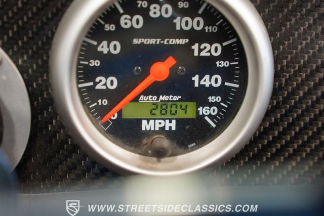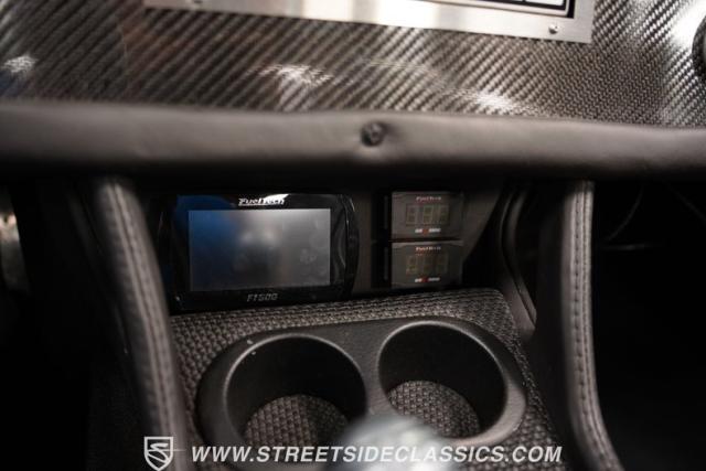 Inside, the black interior is a perfect blend of simplicity and functionality. The bucket seats and door panels, crafted by Steve Holcomb, hold you snugly as you tackle every curve. The carbon fiber dash, adorned with Sport Comp gauges and a convenient switchboard, keeps you in control of this beast. The Fast Five EFI monitor, nestled in the woven-patterned center console, allows you to watch the car\'s vital stats.