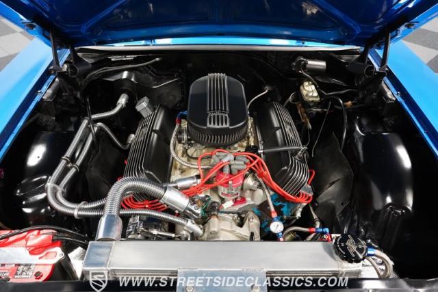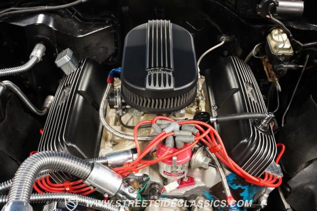 Powering this Galaxie is a robust 428 V8 engine paired with a 3-speed automatic transmission for smooth cruising. The engine bay showcases an array of performance upgrades, including an Edelbrock aluminum radiator, water pump, and intake manifold. Hooker headers feed into a dual exhaust system with FlowMaster mufflers, producing a satisfying rumble. Adding an electric fan and transmission fluid cooler helps maintain optimal operating temperatures. Stopping power comes from front disc brakes, with drums in the rear. The EasyStreet air ride system, featuring airbags front and rear and dual compressors feeding a trunk-mounted tank, allows for adjustable ride height and improved handling.