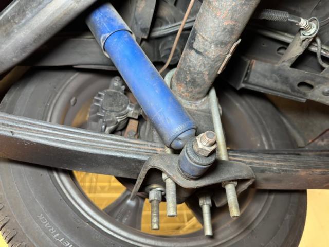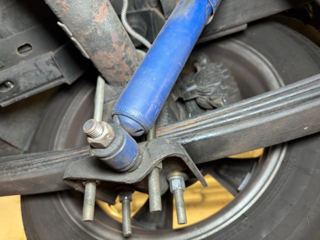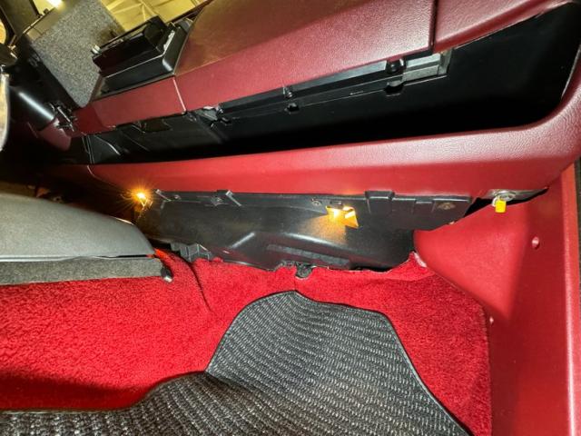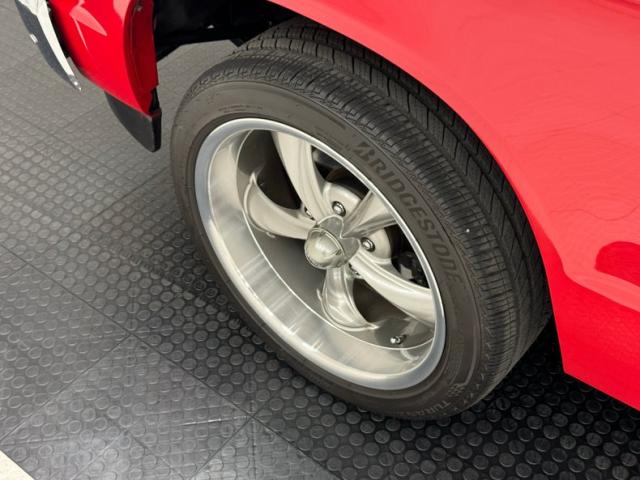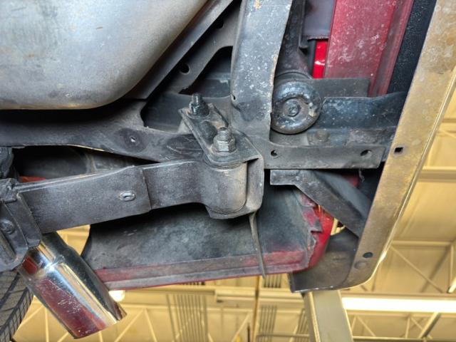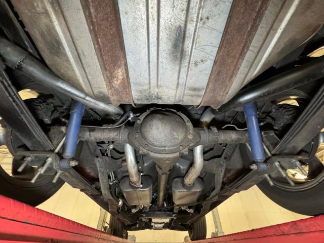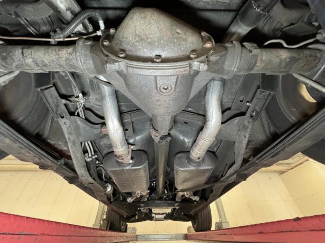 A factory fuel tank hangs off the back underneath, and as we move forward we note miles of black steel with only a few areas of surface rust peeking through on the untreated components. Frame and floor pans are structurally sound and providing the ride is an independent coil spring suspension working with leaf springs in the back. Dropping things 2\" is the BellTech suspension kit that has been installed for a lower meaner look. Power disc brakes are here on the front and rear and also see are ceramic coated headers with a FlowMaster exhaust system with electric cutouts for when you want to be heard before you are seen, which will definitely get attention when you get goosey with your boot.