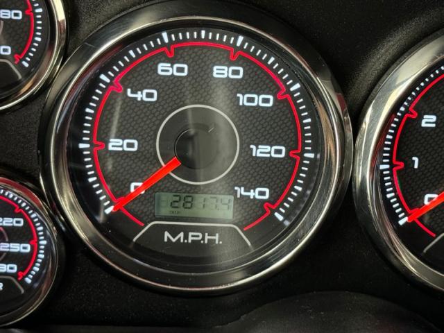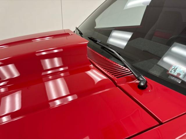 Let\'s start upfront, a very good place to start, where we see a simplified egg crate ribbed grille, single flanking LED headlights and a mirror finished bumper in chrome. A cowled hood, straight steel fenders and doors with more deep red paint draws you in and has you begging for more. Gaps are all well minded, and windows are tinted. Custom side view mirrors are now hanging from both sides, and the rear quarters now accommodate the polished lip 18-inch Ridler 5 spoke wheels wrapped in the back with 245/50ZR18 rubber. Meanwhile, up front we note more Ridler wheels and some 225/45ZR18 rubber. On top, the roof rack has been shaved off and it\'s just miles of ribbed and smooth red steel. More smoked glass for the rear gate setup with a Hurst badge and tall flanking factory tail lights inserted into the ends of the rear fenders.