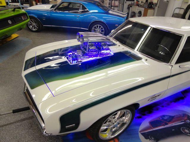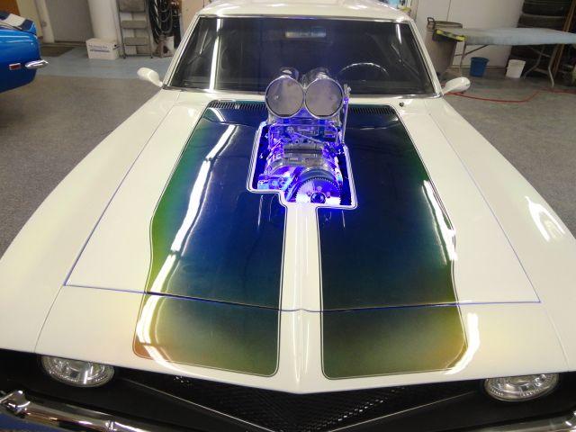 1969 CHEVROLET CAMARO Pro Steet 406 cubic inch small block blower motor.750 horse at the crank. Runs on 110 Octane Engine compartment is either polished billet or chrome or steel braided. Blower unit is from the BLOWER SHOP (PAINT JOB) Is a 5 color change white ecstasy pearl paint job. It has 12 coats of clear on the white and 6 coats of clear on the stripes. The stripes are black but change colors from blue to green. The theme of the car is \'WHITE LIGHTNING\' I have white lightning air brushed on my rear spoiler on my blower belt, and stitched into my head rest of my recaro seats(Interior) is leather and suede with white and black trim with recaro seats. It has a 11 speaker Sony system w/a pioneer head radio. w/3 amps displayed in the trunk, The trunk also has a air brushed canvas with a chick with angel wings laying on a bear skin rug w/a little cleavage. Electric windows, locks, electric exhaust cut offs(headers)Electric fuel pump cut off. Led blue light through out car. Led blue light on rear Chevy bow tie emblem. Electric trunk opener, Push button ignition starter, with back up key ignition Terminal post for battery under left rear quarter panel to charge battery\'s if need be. Battery\'s hidden inside trunk w/panel. One battery is for stereo and the other battery is for starting car (Wheels)Billet specialties bared wheels. Stainless steel exhaust. Please Note The Following **Vehicle Location is at our clients home and Not In Cadillac, Michigan. **We do have a showroom with about 25 cars that is by appointment only **Please Call First and talk to one of our reps at 231-468-2809 EXT 1 ** FREE Consignment Visit Our Site Today Easy To List Your Vehicle and Get it Sold in Record Time. Video Link: https://youtu.be/Rmp8VytYpww?si=d6C0xVqzDz-G8Unv