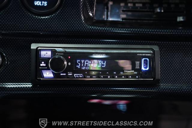 Step inside and you are greeted by a black vinyl interior that blends classic style with modern touches. Bucket seats and a center console offer comfort and support, while a carbon fiber instrument panel and digital gauges bring a contemporary edge. The staple shifter adds to the authentic muscle car feel, and an upgraded stereo system with Bluetooth functionality keeps your favorite tunes at your fingertips. Clean and well-maintained, the cabin is designed for both spirited drives and laid-back cruising.