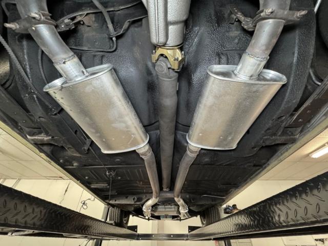 Exterior, interior, engine, and now underside make this car a grand slam! It\'s as clean as can be, beginning with the dual exhaust that flows through Dynomax mufflers and dumps to the outside with chrome tips. Drum brakes all around and the suspension is composed of torsion bars up front leaf springs in back. The absence of surface rust and errant fluids along with clean surfaces is impressive.