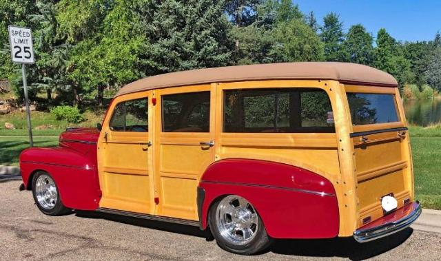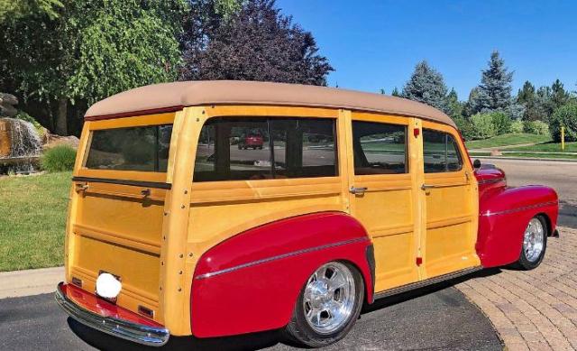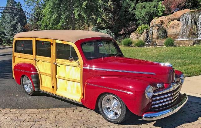 1947 Ford Woody RESTOMOD. Most restorers and collectors know that a Woody or Woodie (spelled both ways) is one of the most expensive and time-consuming vehicles to restore, especially to show quality standards. The exterior and interior woodwork throughout is spectacular on this wagon. Titled as a 1947, but has 1946 trim. Car only has 470 miles, since full body off rotisserie restoration. Actual mileage unknown. Car is virtually brand new inside and out with higher quality than Ford produced on the production line. 4-year professional build. All new maple wood trim with cedar inserts by Mark Miller. Dash was hand wood grained in dark Burl Walnut Chrome work is dazzling. New Dakota digital VHX gauges in original configuration. Chevrolet LSI 5.7L crate engine cloned with Coyote Engine covers, so engine appears to be Ford. Chevrolet Performance belt accessory drive kit. Transmission is a 4L60E 4 speed overdrive transmission built by Mad Dog Transmissions. Maverick rear-end using Chassis Engineering components. TCI Independent front suspension with power rack and pinion steering. Power brakes with front discs and rear drums. Billet Specialty Legacy wheels with knock offs. 16X7 front and 17X8 rear. Yokohama radial tires. All glass is new and tinted. LOKAR throttle pedal and cable. Flaming River tilt column with shifter. Vintage Air heater, air-conditioner, defroster. With Streamline 4 knob control panel. American Autowire wiring harness. Custom hidden Autosound car stereo. Painless EFI wiring harness and ECM programming. Specialty PW windshield wiper kit. Fuel tank with EFI fuel pump in tank Griffin aluminum radiator with automatic electric fan. Frame boxed and powder coated silver. Lowered for the classic Hot Rod stance. Custom leather interior with German weave carpet by Interior Revolutions. Hartz cloth top instead of black rubber top Free and clear title in my name WON Builders Choice award at Good Guys in SLC 2021 WON Outstanding Custom Rod