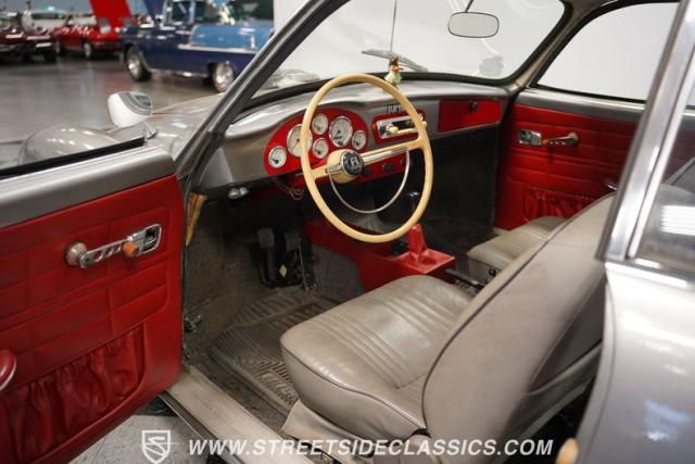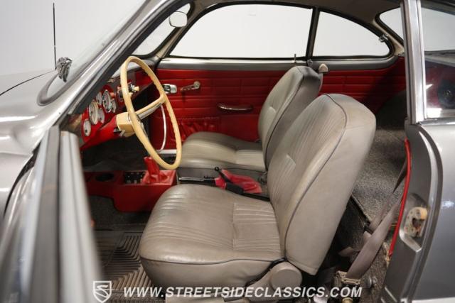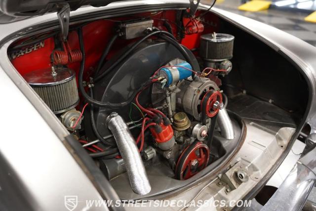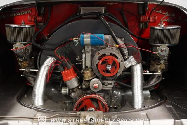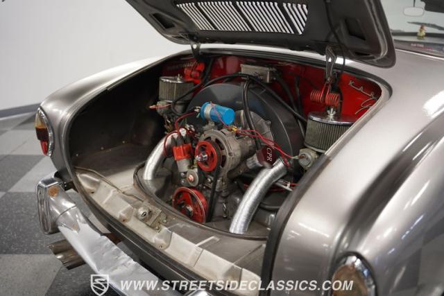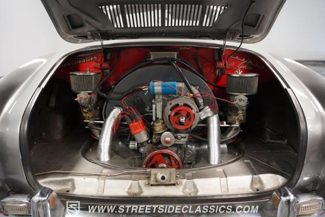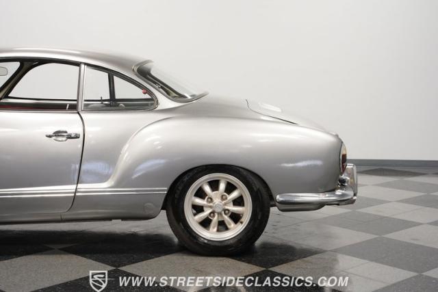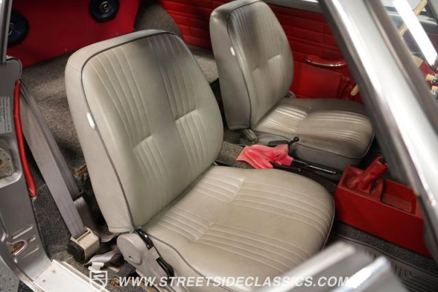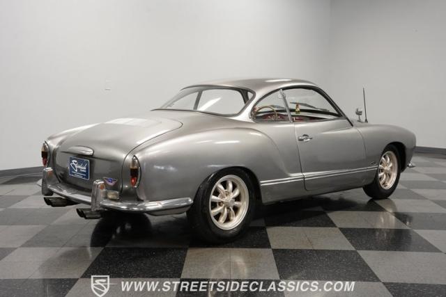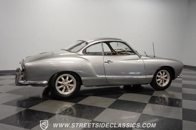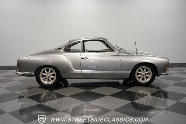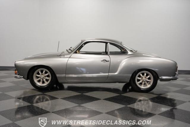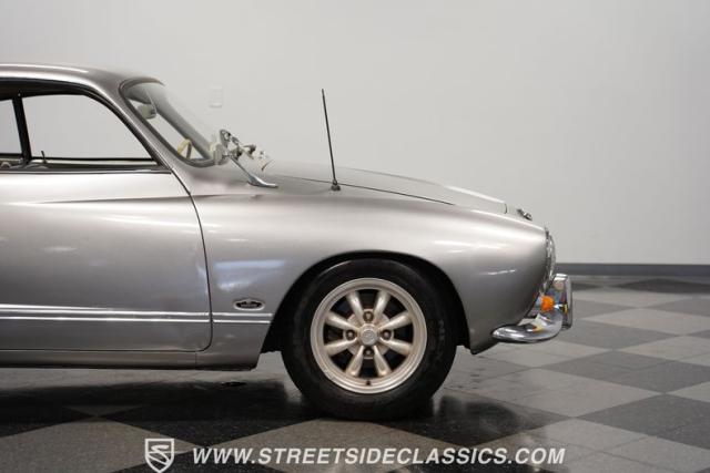 This 1969 Volkswagen Karmann Ghia received over $7,700 in recent fuel system and clutch upgrades, making it a highly capable road performer. The sleek silver paintwork accentuates the iconic Italian-designed bodywork, while the 15-inch chrome wheels add a performance edge to the classic styling. The quad-tip dual exhaust system provides a muscular accent to the rearview. This German-Italian fusion maintains excellent road contact by rolling 165/80R15 tires on all four corners.