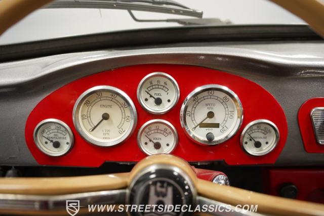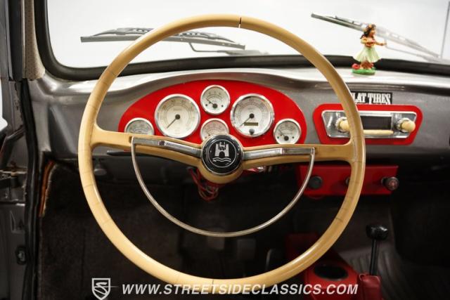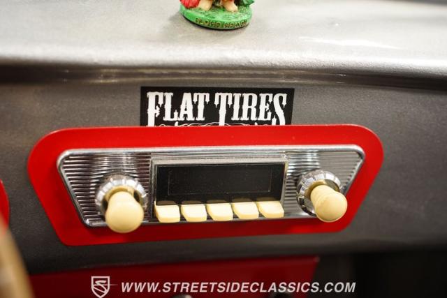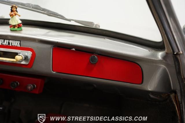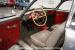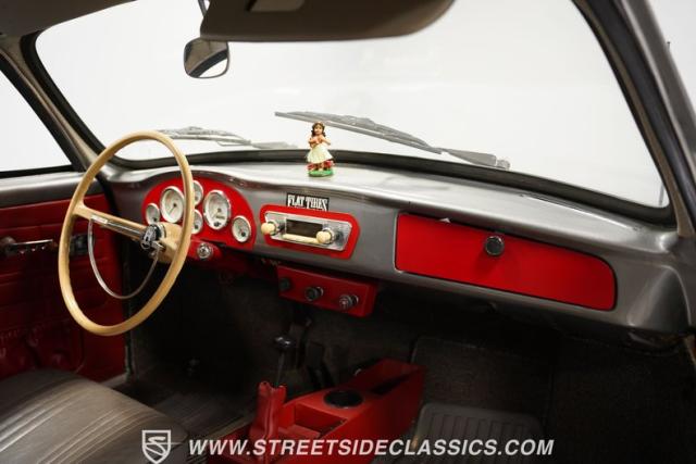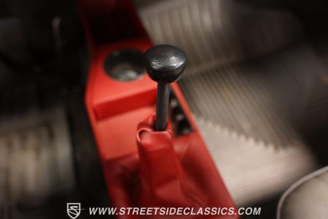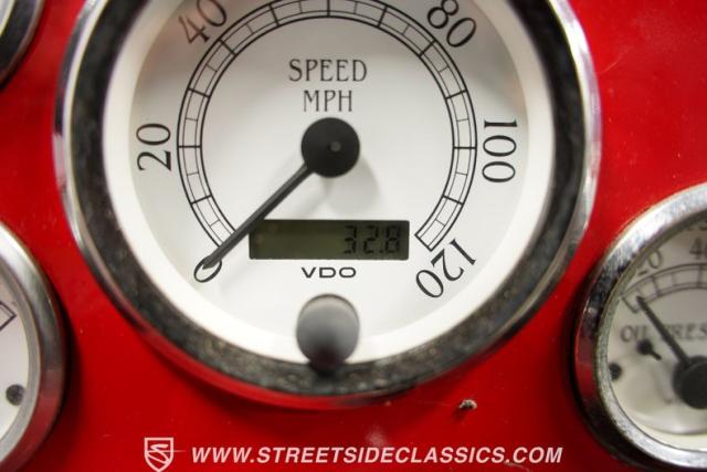 The gray interior with red accents creates an inviting driver\'s environment. Vinyl bucket seats provide excellent support during spirited driving sessions. The white-faced VDO gauges offer clear visibility of vital engine data. A modern retro-style AM/FM radio with MP3 capability and Pioneer rear speakers delivers quality audio entertainment. A battery cutoff switch mounted between the seats adds a race-inspired touch to the cockpit.