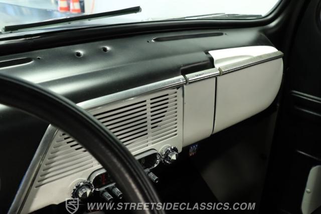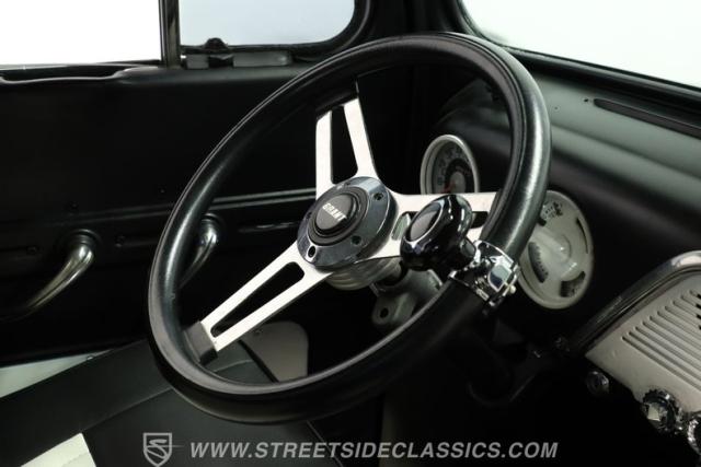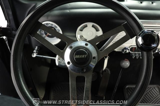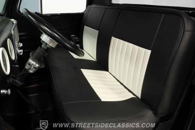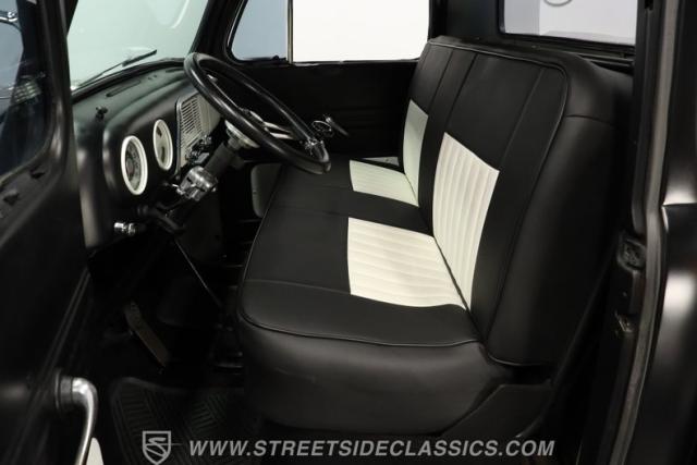 Inside, you\'ll find a cabin that has been thoughtfully restored to capture the period-correct style while adding a touch of modern flair. The interior features a recently refreshed vinyl bench seat, a period-correct gauge cluster, and an aftermarket Grant chrome steering wheel with a custom-mounted turn signal switch. Light wear adds authenticity, while the overall fit and finish ensure comfort and style every time you slip behind the wheel.
