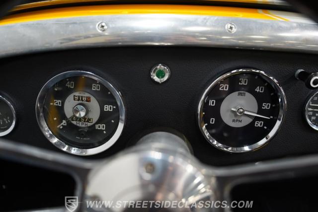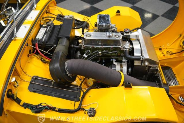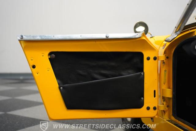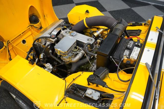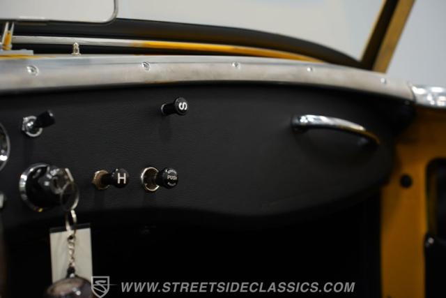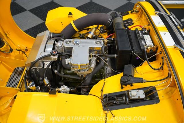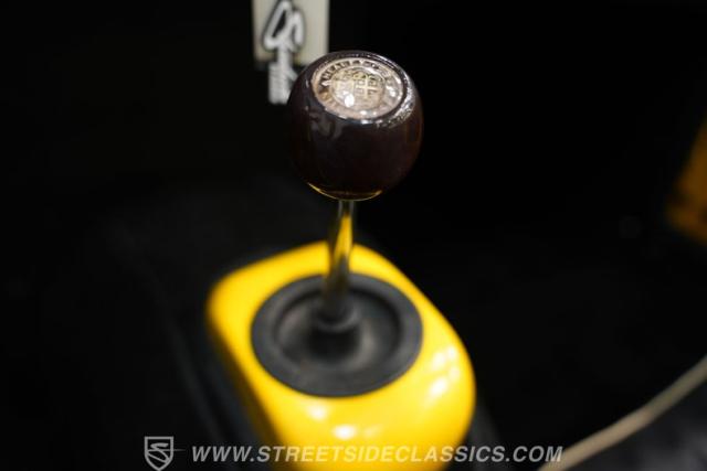 Step inside to a black vinyl interior that balances vintage charm with driver-focused simplicity. The bucket seats offer an engaging driving position, while a wood rim steering wheel adds a touch of sophistication and tactile feedback. Clear, classic gauges keep you informed on every journey, and the interior\'s condition reflects pride of ownership and careful restoration. The cabin is all about the essentials, ensuring your focus remains on the thrill of the drive.