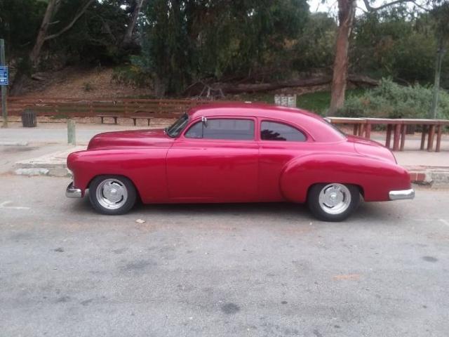 1950 Chevy Coupe 5 inch chop smoothed and frenched 350 cid thumper cam eledbrock intake and 650 carb block hugger headers leather interior including head liner mustang 2 front sup with air bags 4 link coil overs rear with a Chevy 10 bolt diff and a 350 trans. power steering and hydro boost brakes disk up front and drum in the rear 10k on the motor about 50k on trans and diff,, the paint is 35 yrs old so it needs paint ,,no dents no rust good car driven about 20 times a month fun to drive with a little TLC it could be a very nice car,,,,no speedo,, but has all other gauges and all work no horn.. condition: good cylinders: 8 cylinders drive: rwd fuel: gas odometer: 10,000 paint color: red title status: clean transmission: automatic odometer broken Please Note The Following **Vehicle Location is at our clients home and Not In Cadillac, Michigan. **We do have a showroom with about 25 cars that is by appointment only **Please Call First and talk to one of our reps at 231-468-2809 EXT 1 ** FREE Consignment Visit Our Site Today Easy To List Your Vehicle and Get it Sold in Record Time.
