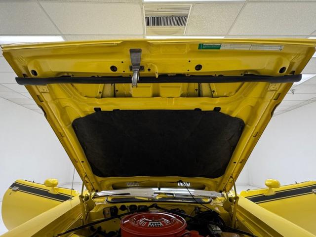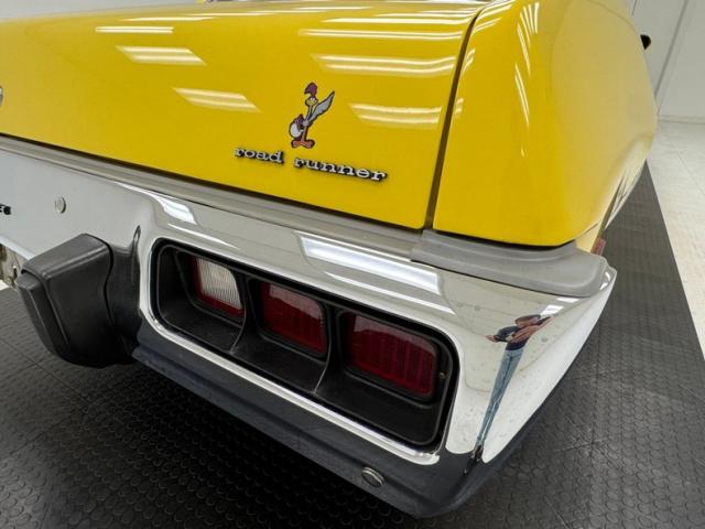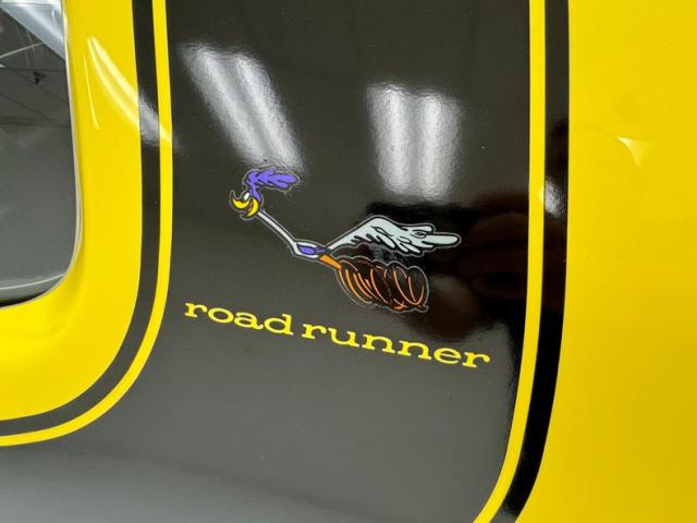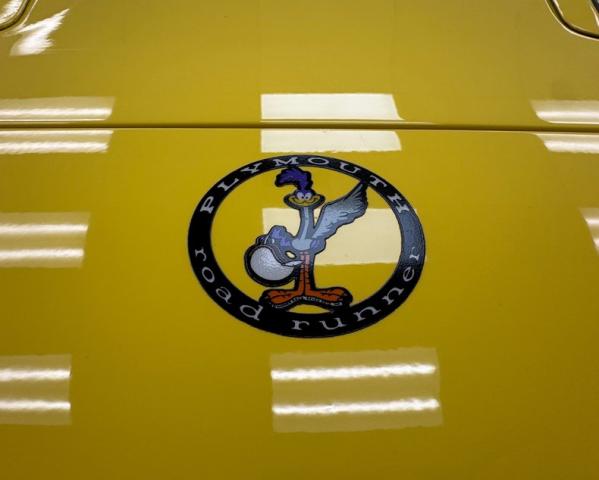 Clean and colorful is how we find the numbers matching 340ci V8 under the hood hiding a 4-barrel carburetor under the orange air cleaner. It\'s mated to the numbers matching A727 3-speed automatic transmission that sends power back to the 8 3/4\" rear with 3.23 gears. Our Road Runner has power steering and power brakes and the bay is showroom fresh looking.