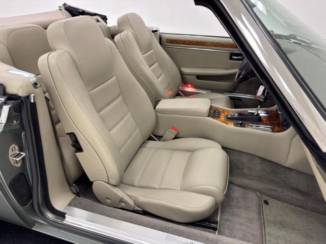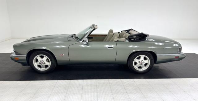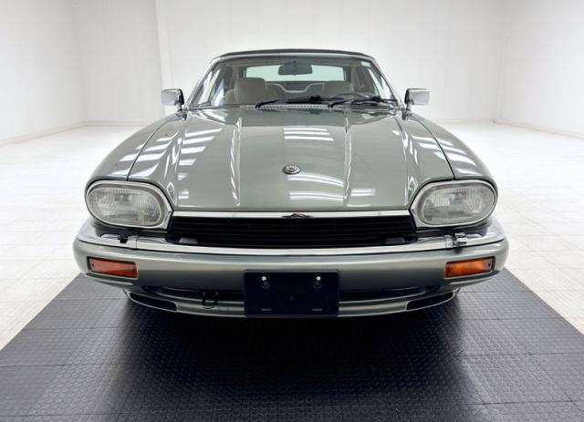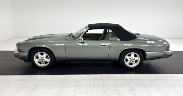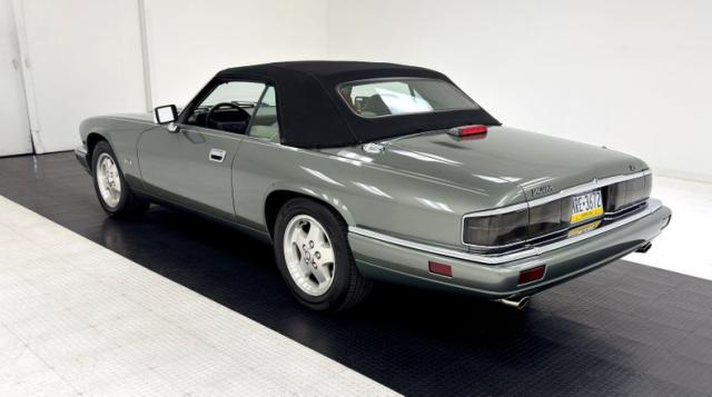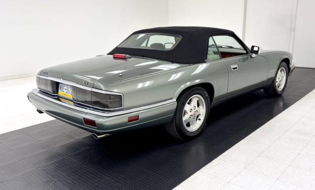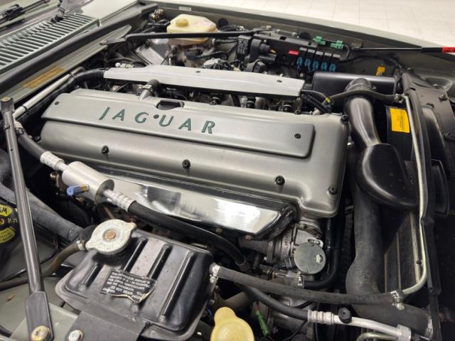 Bathed in two stage Jade Green Pearl Metallic, the key to this car\'s design is a sleek body style with a trim body, yet a muscular stance which is often seen on some of the world\'s finest grand touring automobiles. The car\'s straight panels are accentuated by the desirable composite headlights, bordered on the bottom by an integrated color keyed bumper under a black grille and chrome trim. In back, the XJS\'s facelift includes smoked tail lights now in a horizontal arrangement over a stunning jade bumper and two exhaust tips. 16-inch aluminum alloy wheels carry 225/60R16 tires with a late 2022 date code. On top is a black canvas convertible top with a glass rear window that is in superb condition. Imperfections are limited to some scuffs on the front spoiler and some clear coat issues on the wheels. The paint and trim is in beautiful condition and the color presents very well.