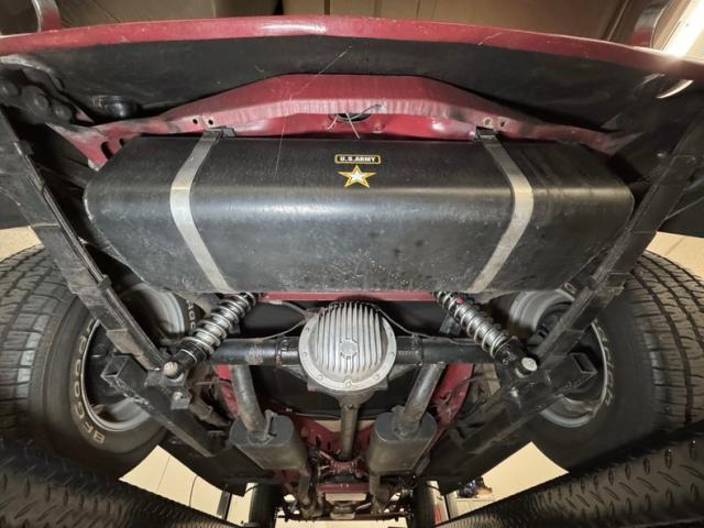 Some surface rust and a few drops of oil show up on the underside which is otherwise driver quality and clean. FlowMaster mufflers accompany the dual exhaust on their way to a rear exit and brakes are configured as front disc and rear drum. Leaf springs are employed front and rear as the main suspension components.