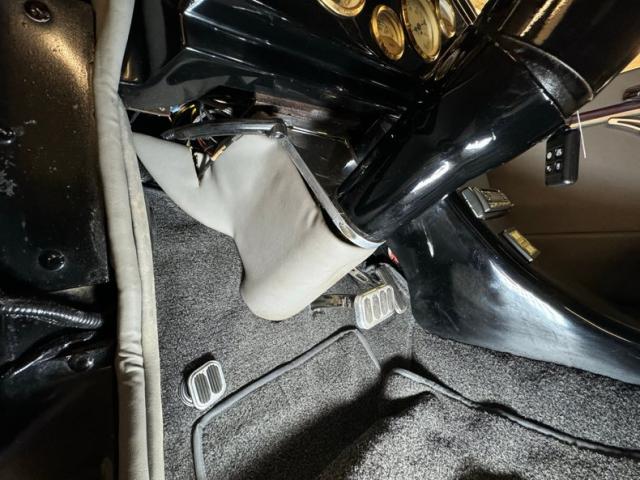 Fuel injection does its job by starting the engine on demand and the small block puts out some sweet notes to the sides. The staggered tires provide straight tracking going forward and turn-ins can be sharp as the big boys in back make the circle. Braking is adequate and acceleration is respectable for this lightweight street rod. Our horn does not blow and the air from the A/C is cool but not cold. Beyond that, all functions operate as intended. While Classic Auto Mall represents that these functions were working at the time of our test drive, we cannot guarantee these functions will be working at the time of your purchase.
