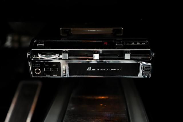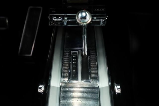 INTERIOR: The interior is extremely tidy and exceptionally well presented. Up front is an especially clean dash featuring detailed trim, shiny bezels, and the original radio still in place with no broken or drilled surfaces. Mounted to the steering column is a vintage style tachometer, just like enthusiasts installed back in the day. The center console is in mint condition and houses the automatic shifter along with working interior lights, while a nostalgic 8-track player is mounted just above it. The seats have been recushioned and reupholstered with a smooth, wrinkle free fit. The door panels and armrests have been replaced, and it retains a full set of seat belts front and rear. Fresh looking carpet covers the floor, while a tight fitting new headliner finishes the cabin overhead. Interior moldings, emblems, and even the pedals are all exceptionally clean, reflecting the overall quality and care of this car.