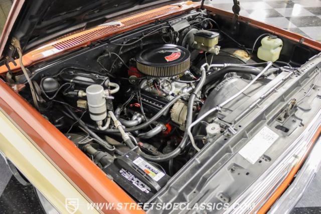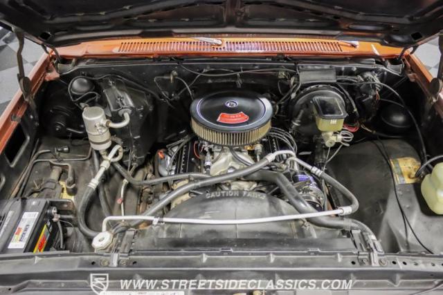 A peek at the engine bay reveals a 5.0-liter V8, primed for action. The Chevrolet dress-up kit adds visual punch to the functional components. An Edelbrock aluminum intake manifold and carburetor optimize airflow, while long-tube headers efficiently channel exhaust gases. This powerhouse pairs with a 3-speed TH350 automatic transmission, rebuilt just two years ago by Mark\'s House of Hot Rods. Power steering and power brakes with front disc offer precise control, while the 10-bolt rear axle effectively puts the power to the pavement.