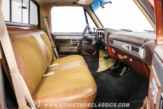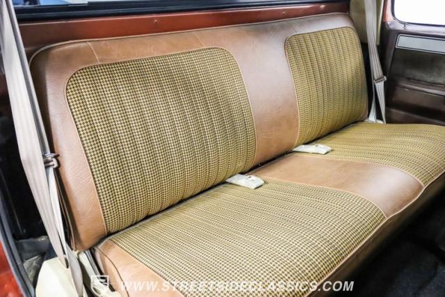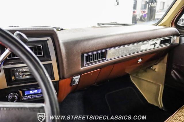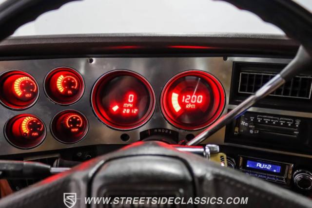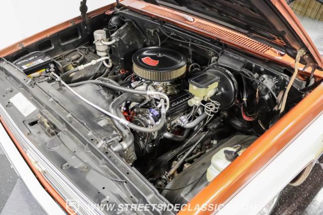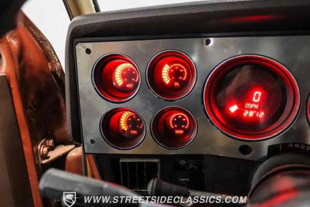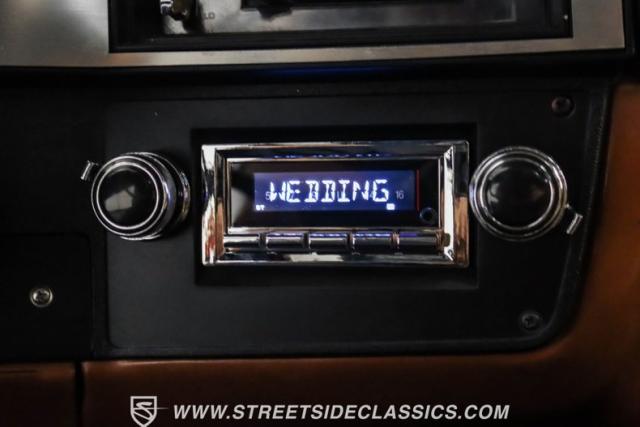 Open the door to an interior that fuses classic style with modern flair. The bench seat, wrapped in almond-colored vinyl and cloth, features a distinctive houndstooth pattern. Fresh carpeting and a new dash pad elevate the cabin\'s appeal. Digital gauges provide precise readouts, while the aftermarket Custom Auto Sounds stereo with Bluetooth lets you crank your favorite tunes. The column shifter maintains the truck\'s original feel, bridging the gap between vintage and contemporary.