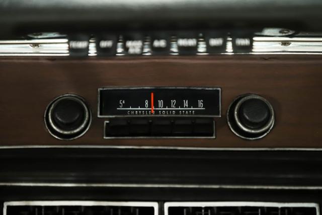 ENGINE COMPARTMENT: Under the hood is a date correct 383 four barrel V8 factory rated at 335 horsepower. It has factory air conditioning, power steering, and power brakes. Flaunting Chrysler reproduction spark plug wires and hoses, this car is done totally right. Everything looks clean and proper. The radiator looks fresh and the horns are hooked up. The battery is properly secured. The original fender tag is also in place. The underside of the hood, fender wells, and firewall were all nicely painted to match the body.